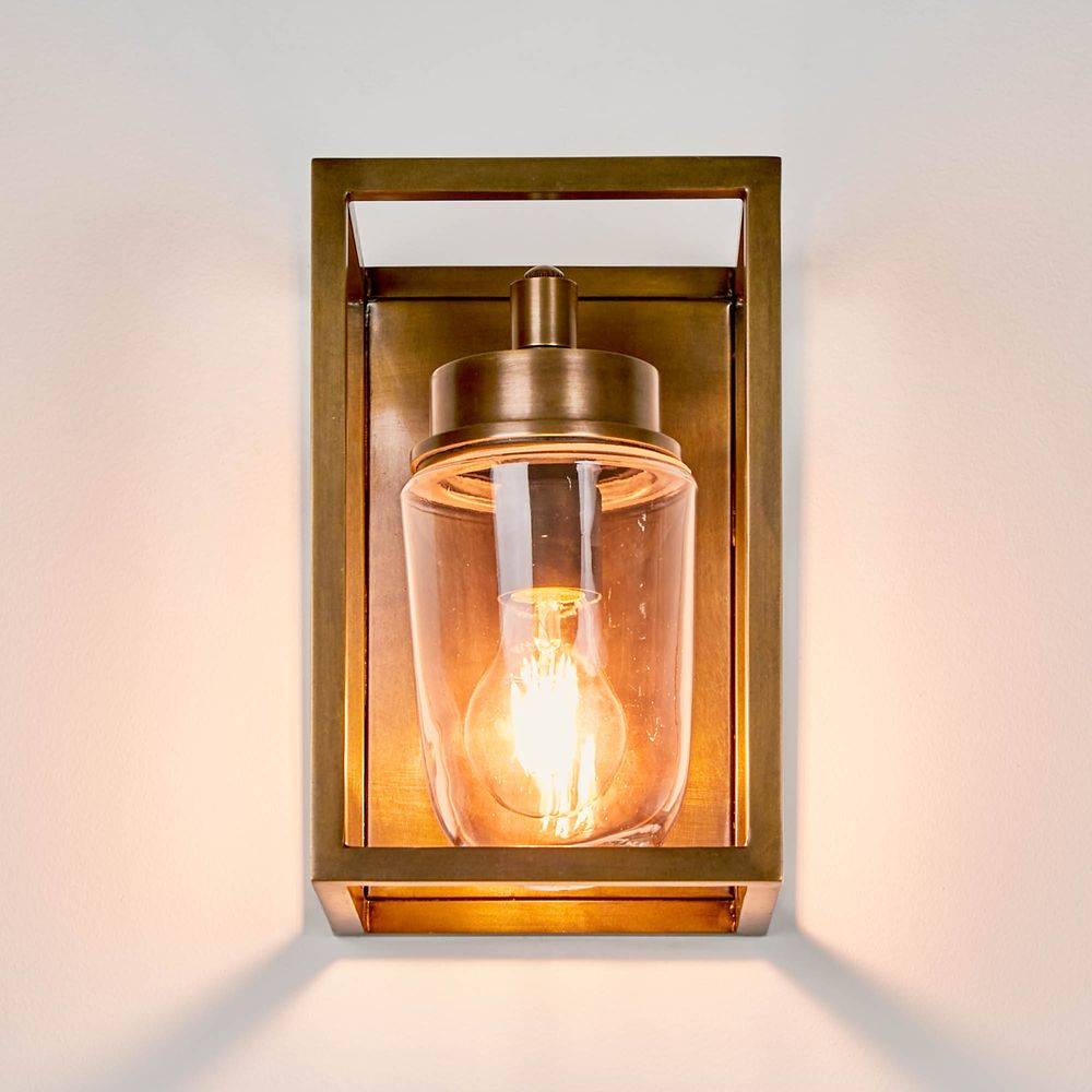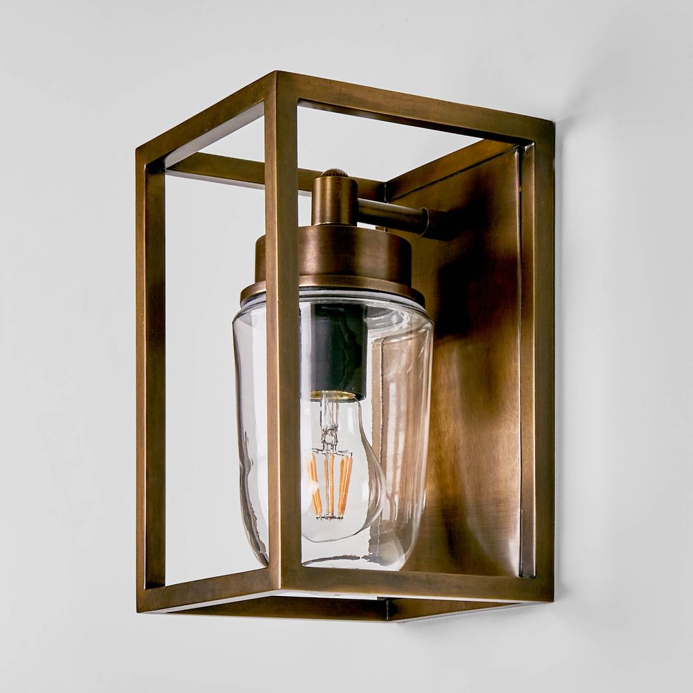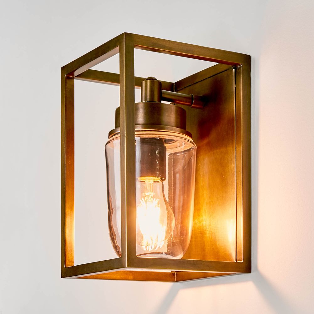 Our Wellington lamp is flush fitting wall lantern that can be used indoor or outdoor. The lamp has IP rated 44 to suit them for outdoor use. With simple rectangular design, this fitting has industrial appearance that suit both modern and traditional area. The material is brass and has clear glass cover to protect the bulb. This versatile wall light is available in choice of finishes: antique silver, brass and black.