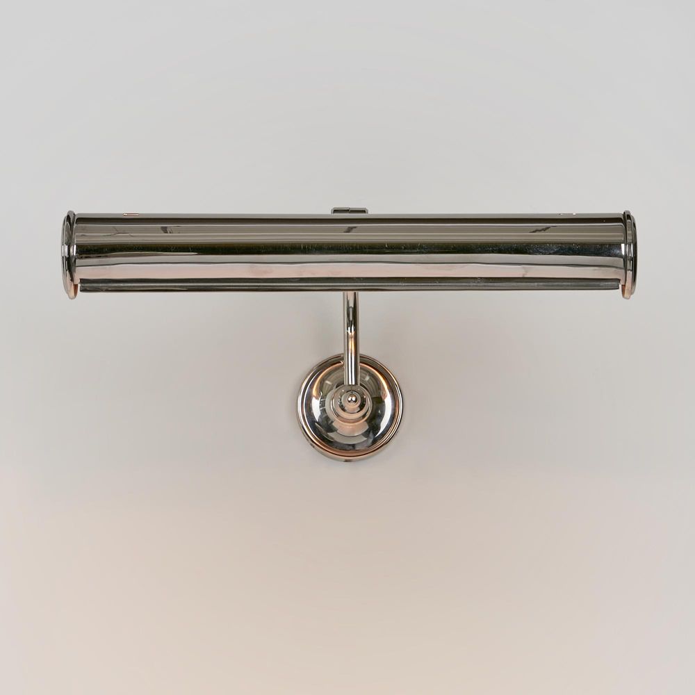 Turn your home into art gallery with this classic and industrial picture light in antique or metallic finish. This wall light is crafted from solid brass and features adjustable join for directional illumination. It will require two small Edison globes with round wall plate completes this functional fixture.