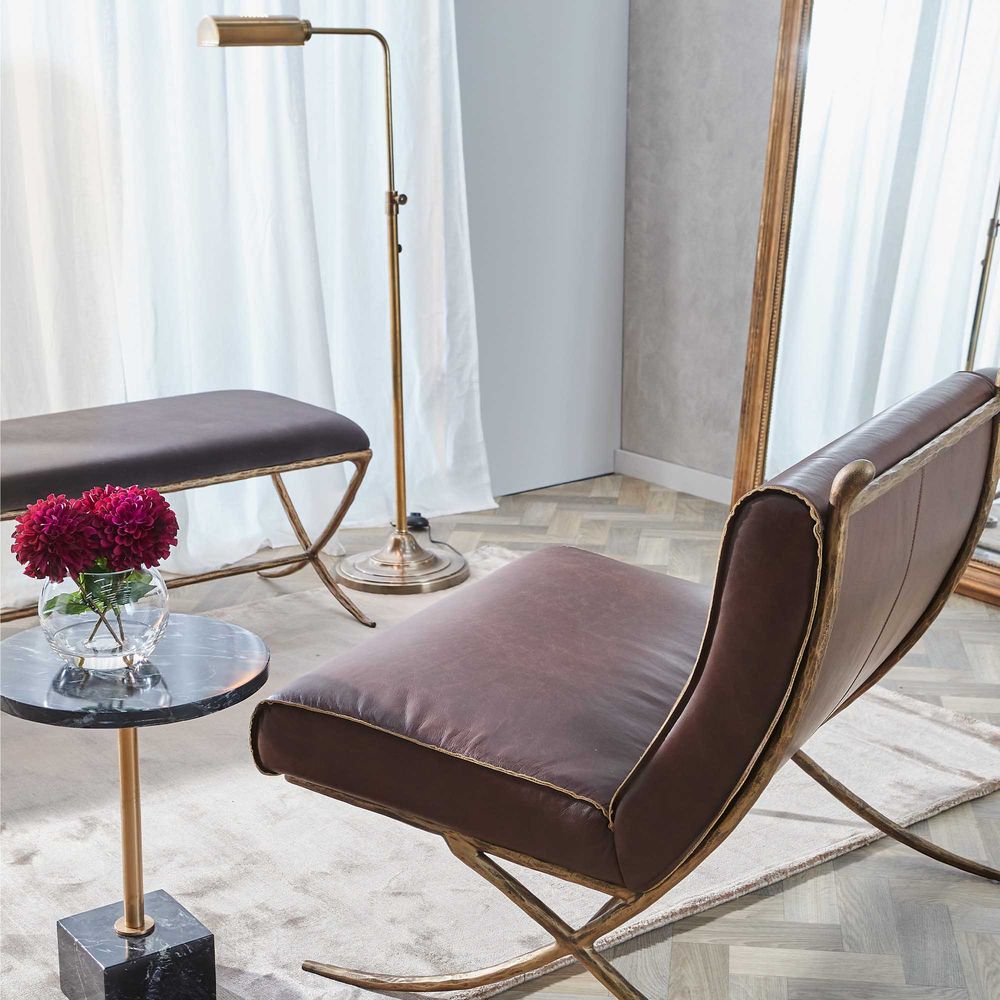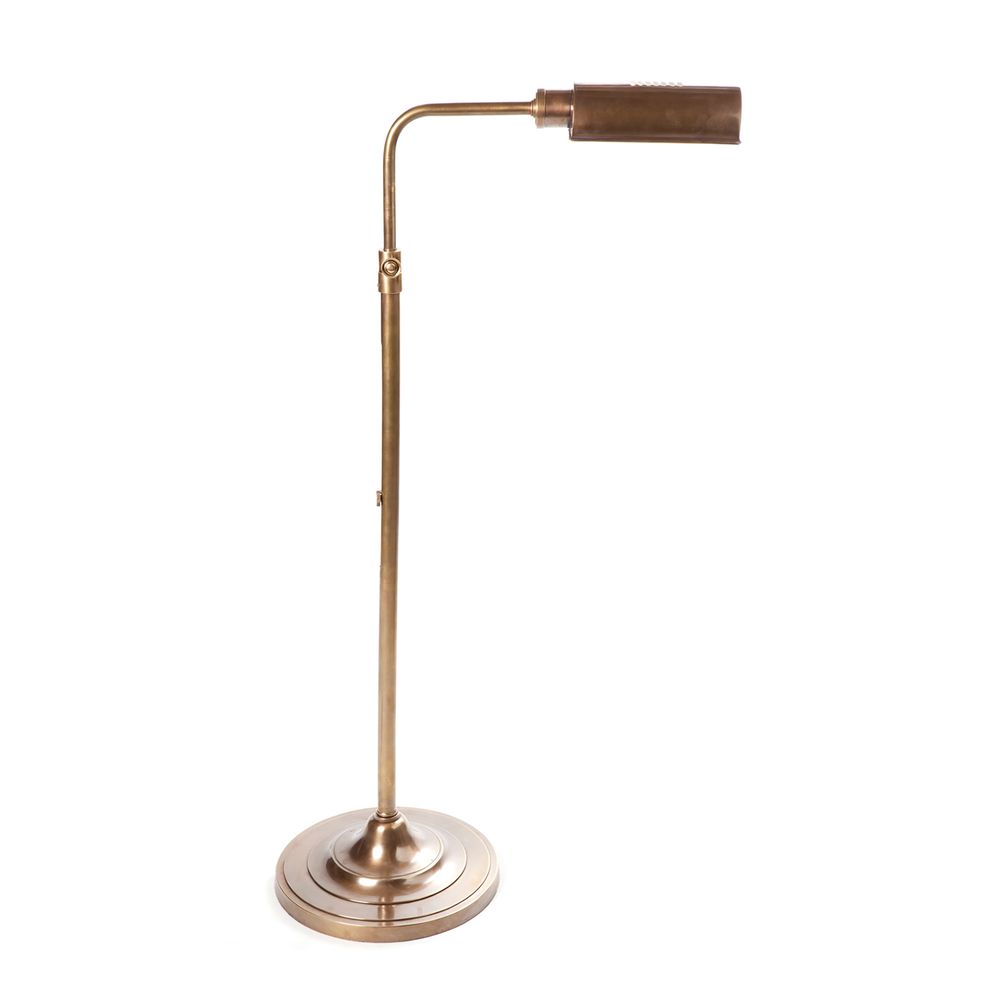 Brooklyn is adjustable height floor lamp that makes it easy to customize your lighting to any space. It features metal tent shade that creates warm downward light suit for reading and can be adjusted left and right. The aged brass finish offers true classic charm to this design.