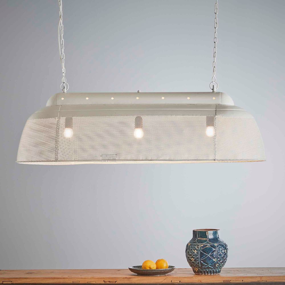 A rustic perforated pendant light with an industrial feel.