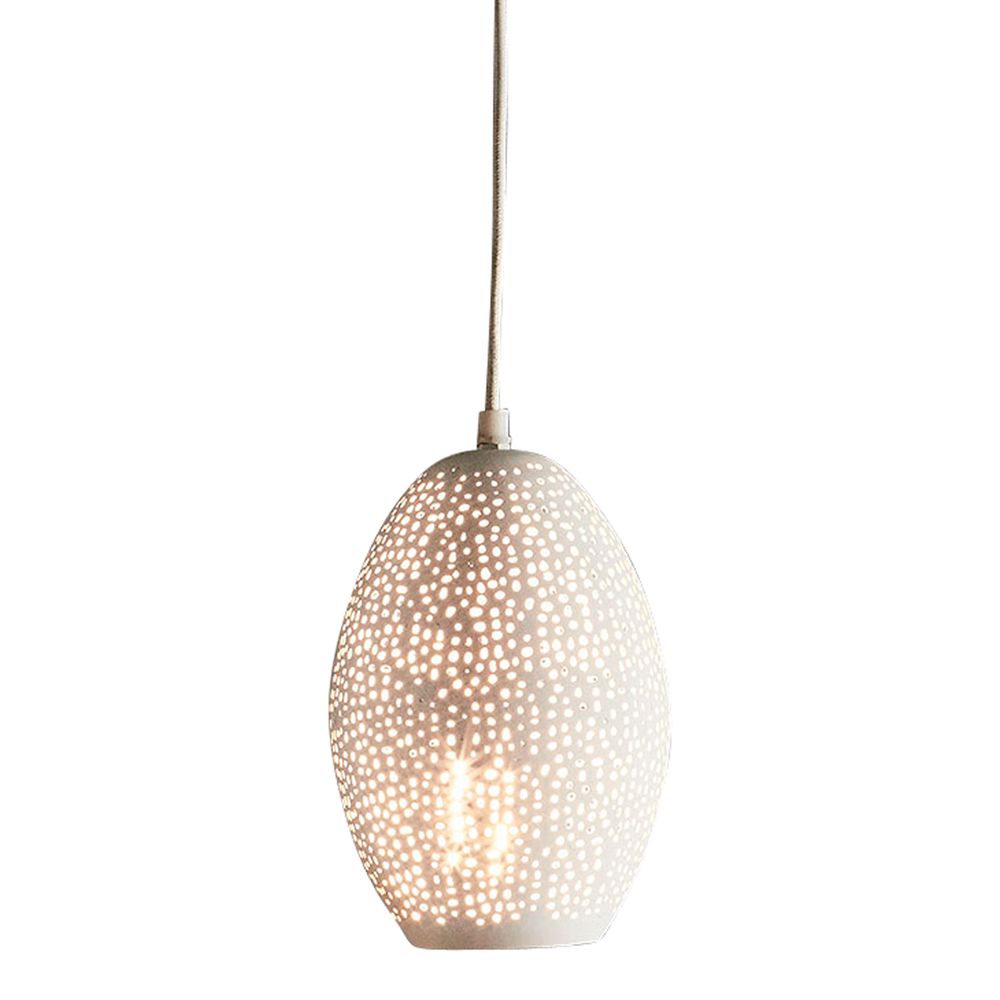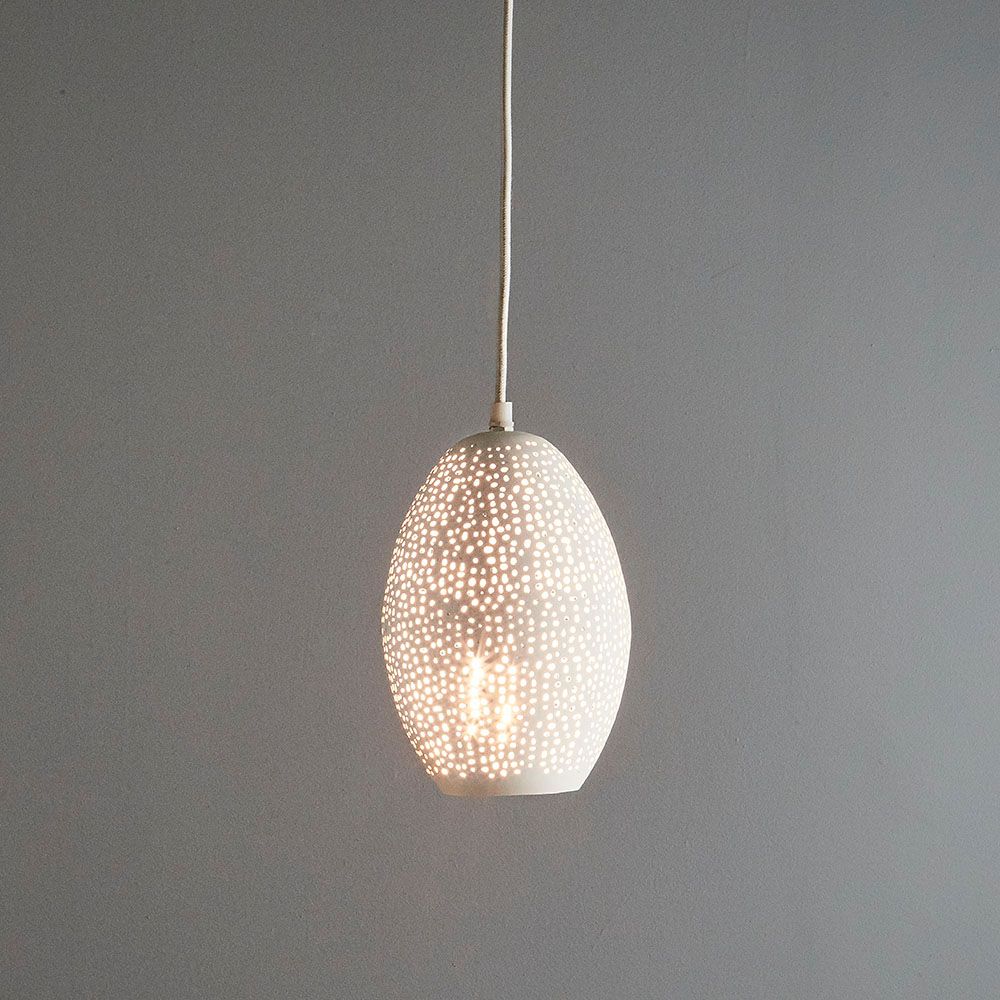 The stella is a white lozenge shaped pendant with delicate perforations for a wonderful glow.