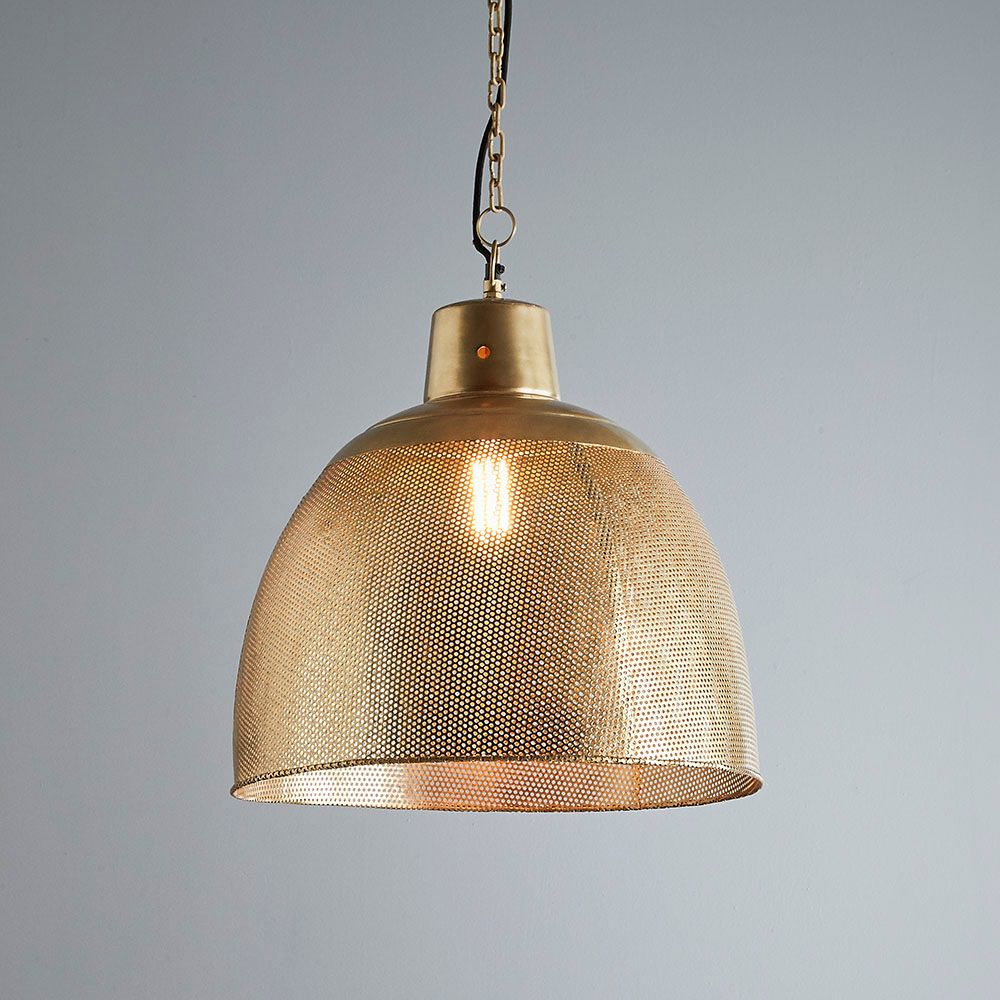 A rustic perforated pendant light with an industrial feel.