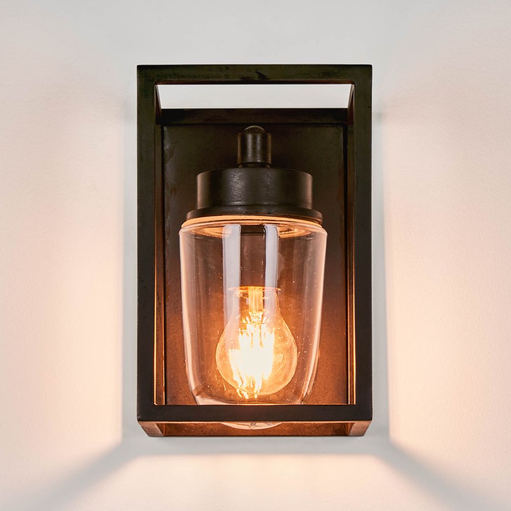 Our Wellington lamp is flush fitting wall lantern that can be used indoor or outdoor. The lamp has IP rated 44 to suit them for outdoor use. With simple rectangular design, this fitting has industrial appearance that suit both modern and traditional area. The material is brass and has clear glass cover to protect the bulb. This versatile wall light is available in choice of finishes: antique silver, brass and black.