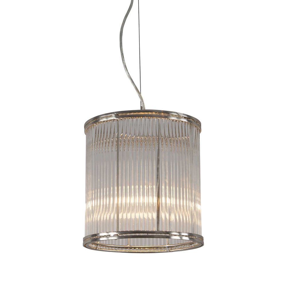 Our Denzel pendant light is modern accent pendant that made from clear glass tubes with polished nickel frame metal top and bottom and adjustable suspension cord. The glass tubes diffuse light beautifully and produce amazing round reflection on the on the glasses. This pendant will instantly upgrade your foyer, kitchen island or living space.