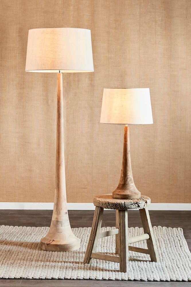 Bright ideas need chic companions. Presenting our stunning Large Lancia Floor Lamp Base in Light Natural. Crafted from solid wood, its sleek, tapering stem rises from a round base, exuding timeless sophistication and classic charm. This lamp base is the epitome of simplicity, offering a refined accent to any room while casting a warm and inviting glow. Pair with a Linen Drum Lamp Shade for a harmonious blend of style and functionality that will elevate your decor to new heights.