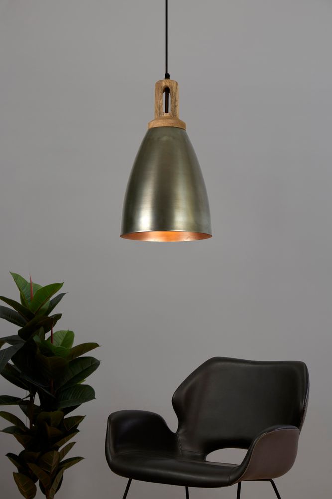Cast a spotlight on sophistication with our Lewis Ceiling Pendant in Zinc, a tall dome pendant light crowned with a wooden top. This elegant fixture is perfect for creating a focal point above reading nooks, dining tables, or kitchen islands, infusing your home with a touch of vintage sophistication. Let its warm glow and striking design captivate your guests while adding a dash of refined charm to your décor scheme.