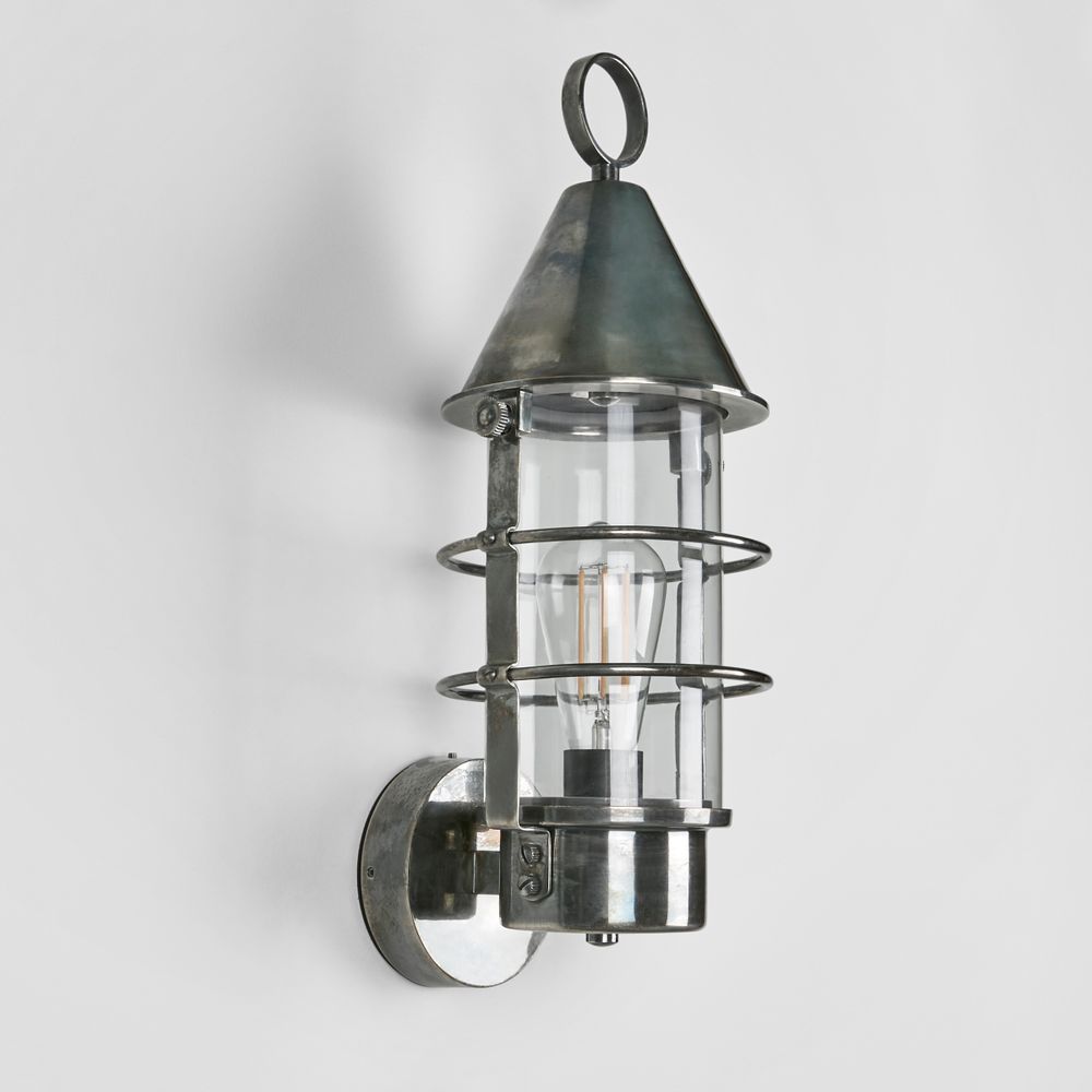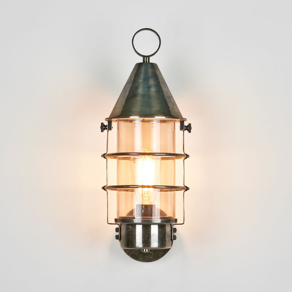 Our Eastwood wall light is IP-rated 54 outdoor wall sconce with clear glass and brass metal cage, which suitable for indoor and outdoor use. This lantern style wall lamp is used mainly for outdoor garden lamp, patios and entryways. With sleek appearance, it can also be used in bathroom as side mirror lights to match any industrial, rustic or loft-style décor. Its caged enclosure houses a standard bulb or an antique-style filament that mimics the glow of a warmly lit station.