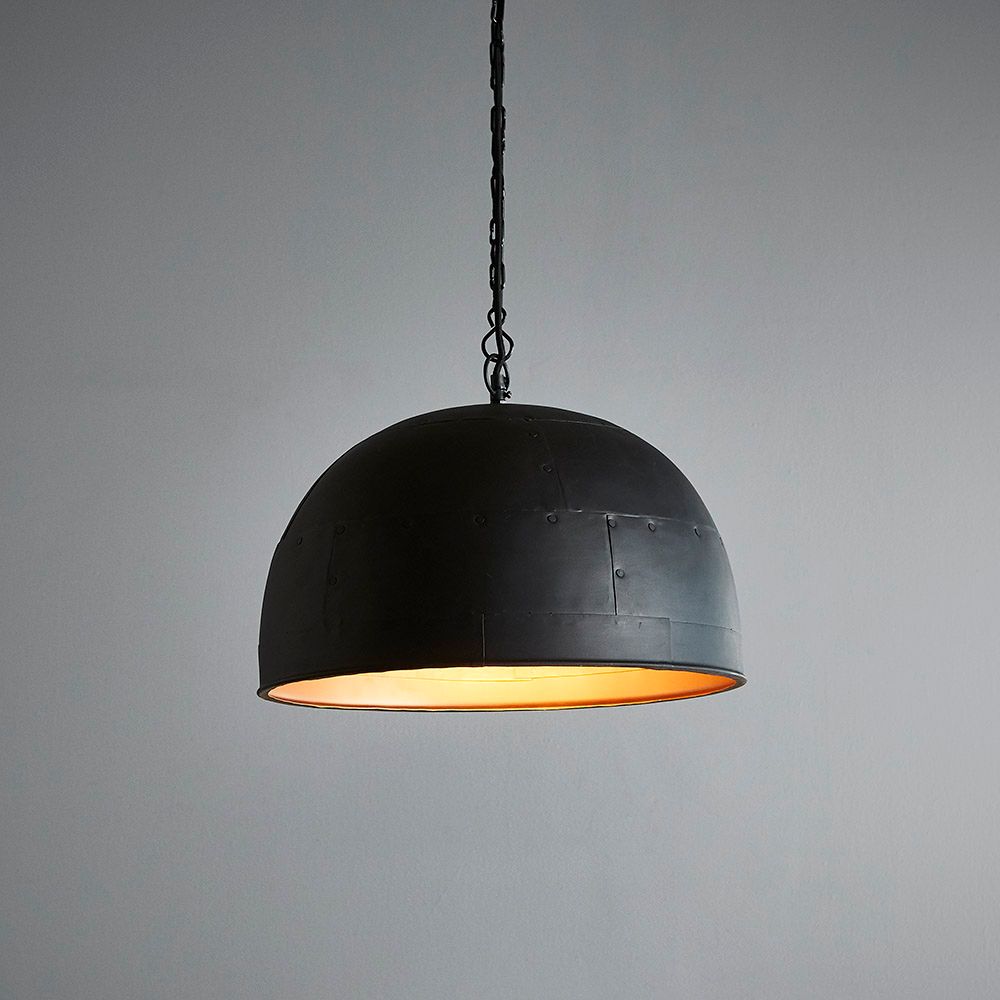 A mid-sized riveted dome with a matte black exterior and a gold interior.