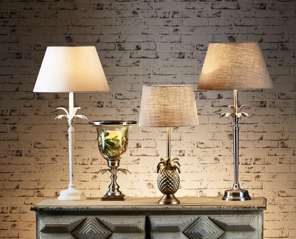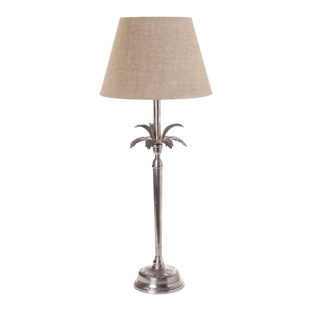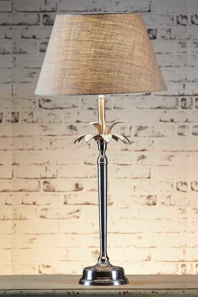 Our Casablanca table lamp is tropical and exotic table lamp and come with beautifully detailed palm tree. This nature table lamp brings tropical feel to living room, bedroom or hallway. The available colours are white, antique silver or brown, and bronze. Matching shade is shown in the picture and lamp shade is sold separately.