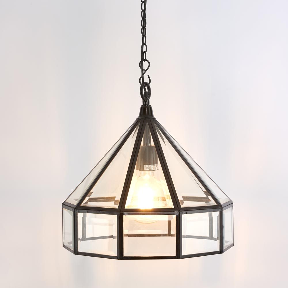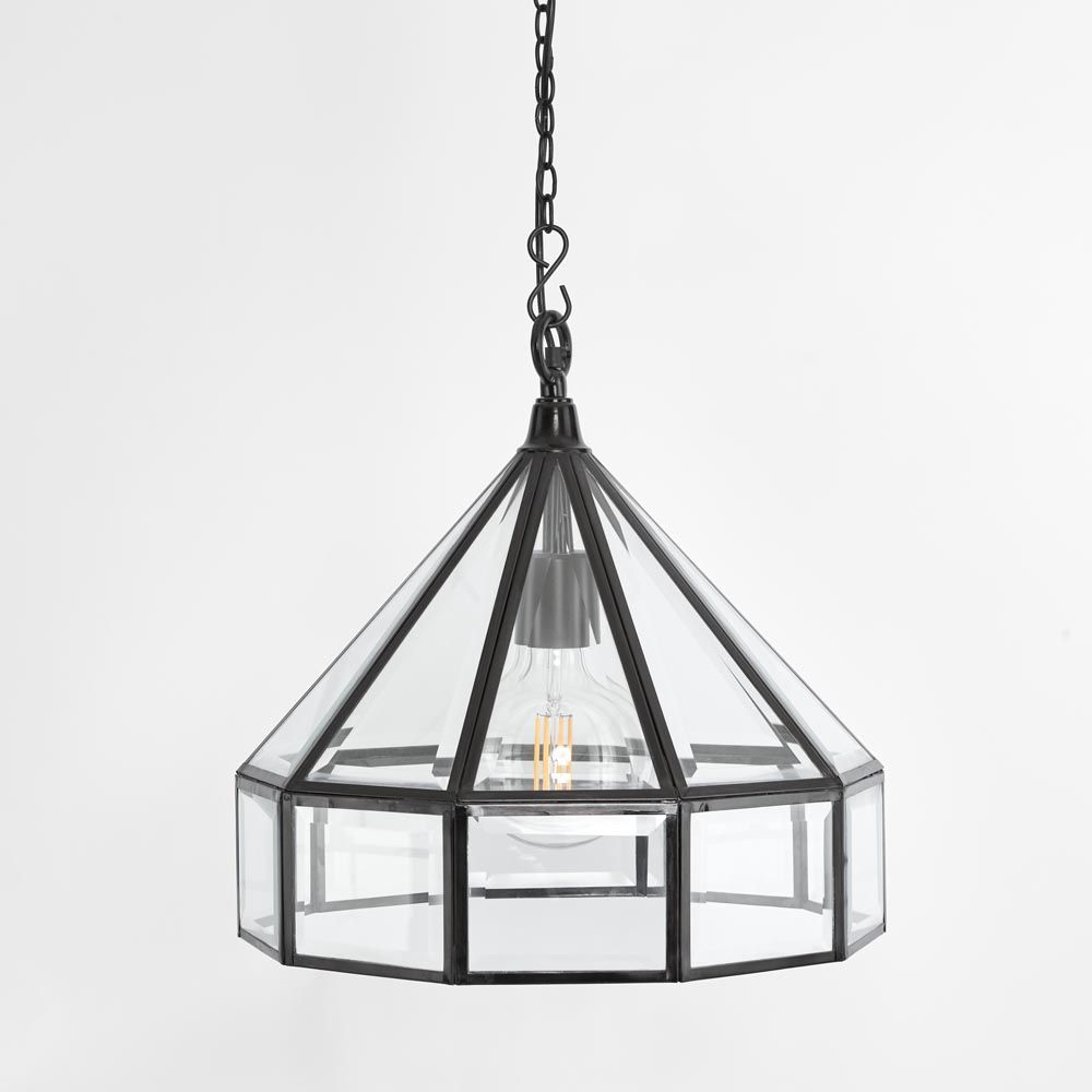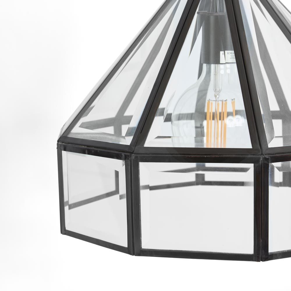 Our Hagman pendant lamp was inspired from Moroccan designs with terrarium style. This lamp is perfect décor for living room, kitchen or bedroom. The pendant light is well and solid, made of quality clear glasses with black metal frame.
