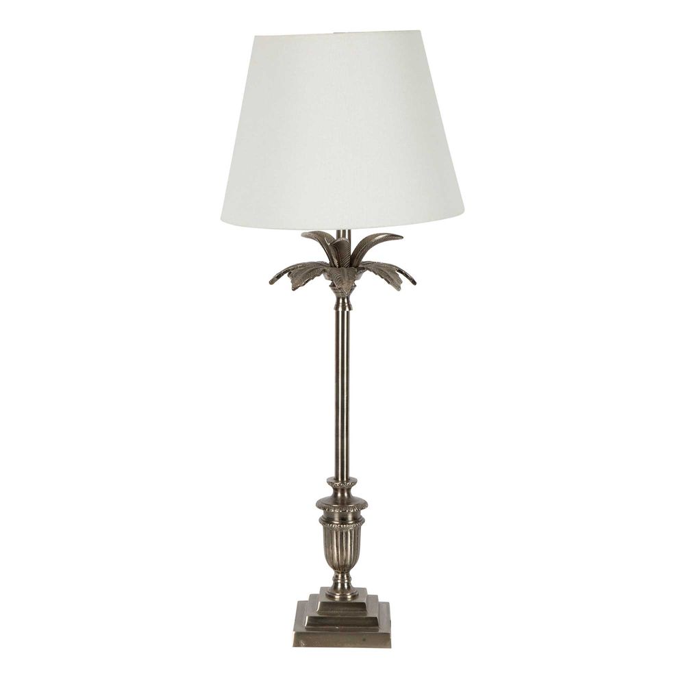 Infuse your living space with a touch of old Hollywood glamour with our Palm Springs Table Lamp Base, exuding vintage charm with its antique silver pedestal and intricate palm detailing atop. Effortlessly enhancing any lampshade, it adds a touch of timeless elegance to even the simplest shades. Whether nestled in a cozy corner of your living room, gracing the bedside table of a boutique hotel, or illuminating a chic commercial space, this lamp base promises to captivate and charm.