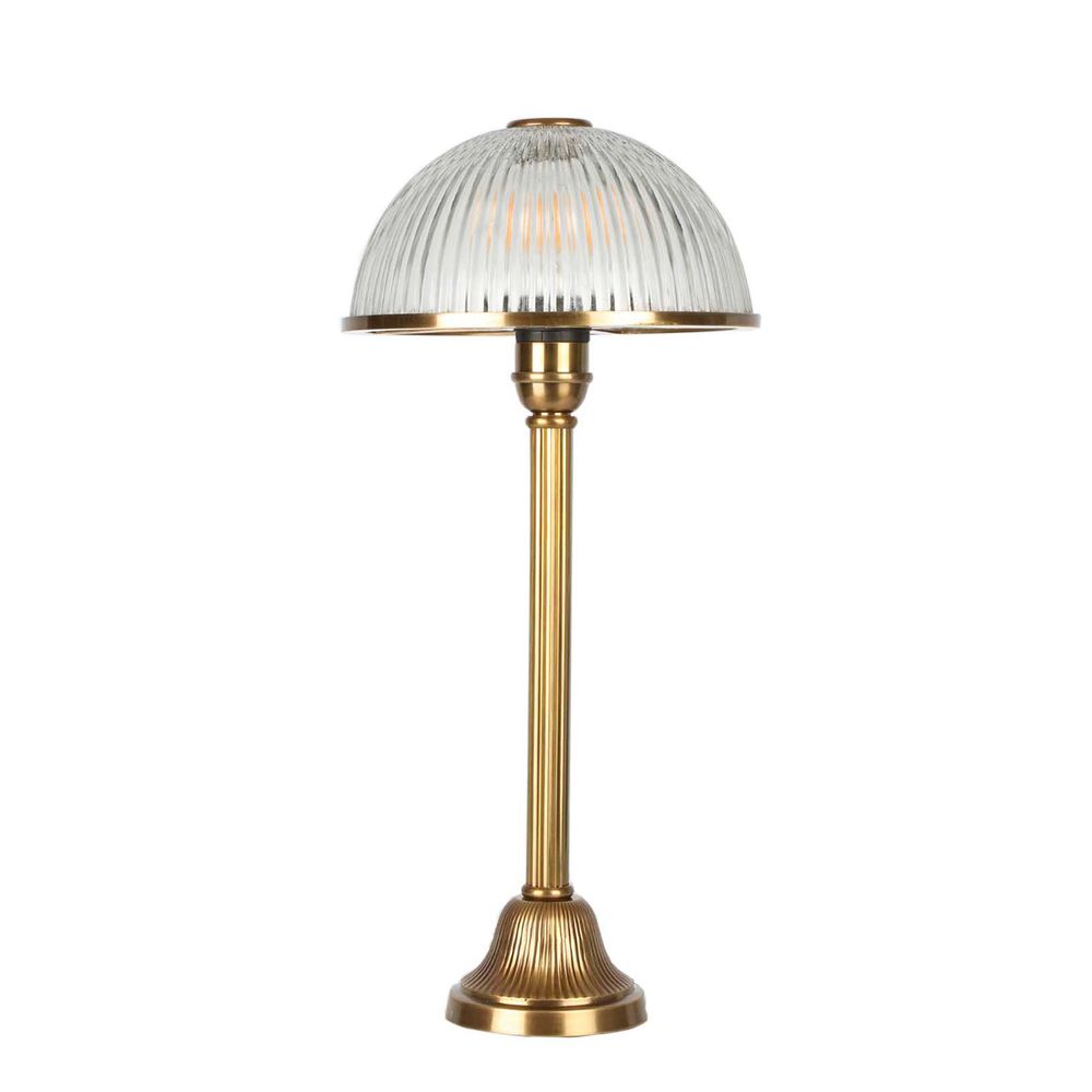 Introducing our Fraser Table Lamp, a luminary masterpiece that adds a touch of timeless elegance to any space. With its ribbed antique brass base and matching ribbed bowl glass shade, this lamp exudes classic sophistication in every detail. Perfect for bedside tables, consoles, offices, and study spaces, it effortlessly combines functionality with refined style. Illuminate your surroundings with the Fraser Table Lamp and bask in the warm glow of sophistication and elegance.