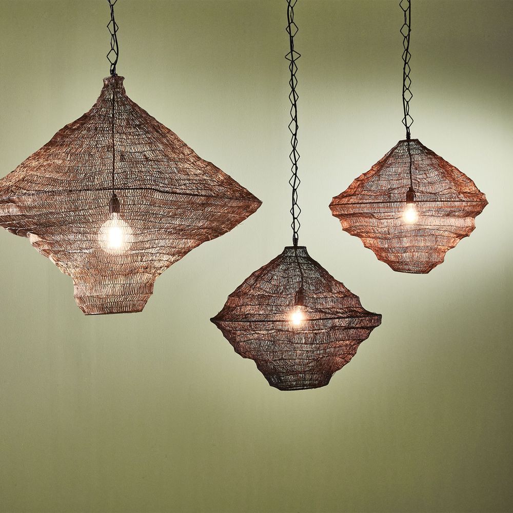 Our Metropolitan is a modern and stylish hanging lamp in medium-sized, diamond-shaped shade with a black/brass finish on the outside, giving it a sleek and sophisticated look. The shade is made of aluminum and is suspended by adjustable cord and chain that allows you to customize the height of the lamp. The lamp has a minimalist design that would complement a variety of interior styles, from contemporary to industrial. It is perfect for adding a touch of elegance and sophistication to any space, whether it's a living room, bedroom, or dining room. Overall, the Metropolitan Ceiling Pendant is a stylish and practical lighting solution that would add a touch of modern sophistication to any room.