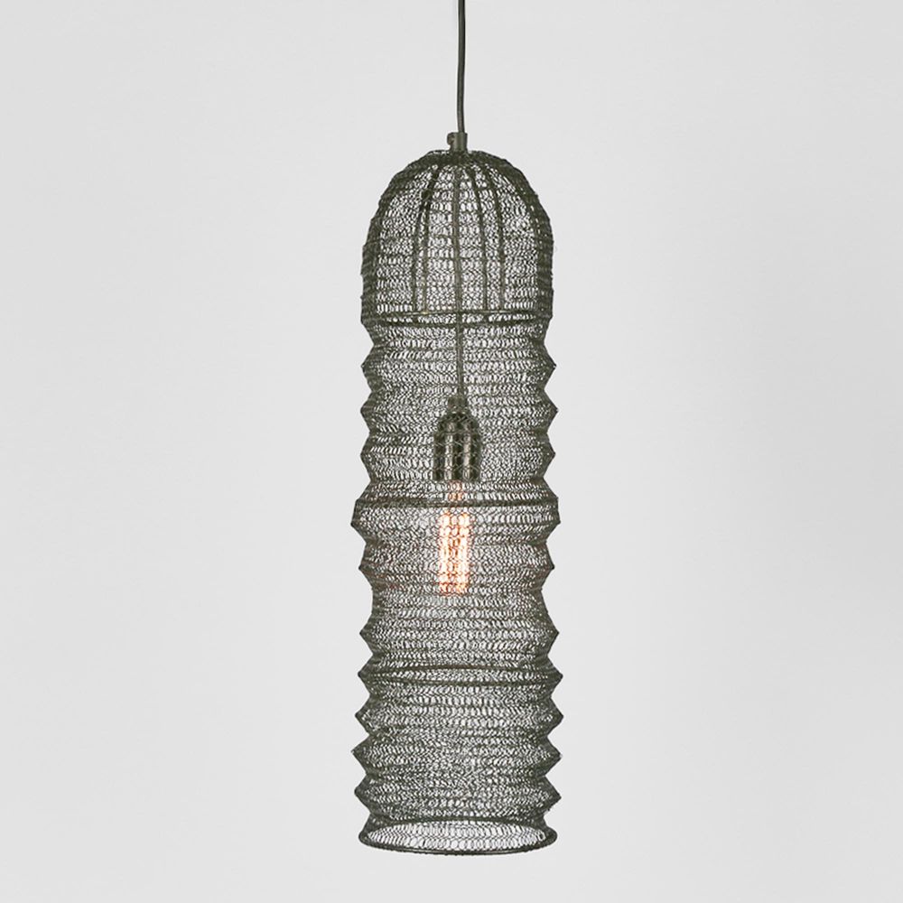 Introducing our Monash Wire Mesh Ceiling Pendant in Black, a luminous masterpiece marrying elegance and texture with its long cylindrical shape and woven metal design. This pendant isn't just a light fixture, it's a statement piece, poised to elevate any space it graces, whether it's suspended over a dining table, adorning an al fresco area, accentuating a kitchen island, or filling a void space with sophisticated allure. Let its intricate design and soft glow captivate your senses, turning every moment into an exquisite experience of light and style.