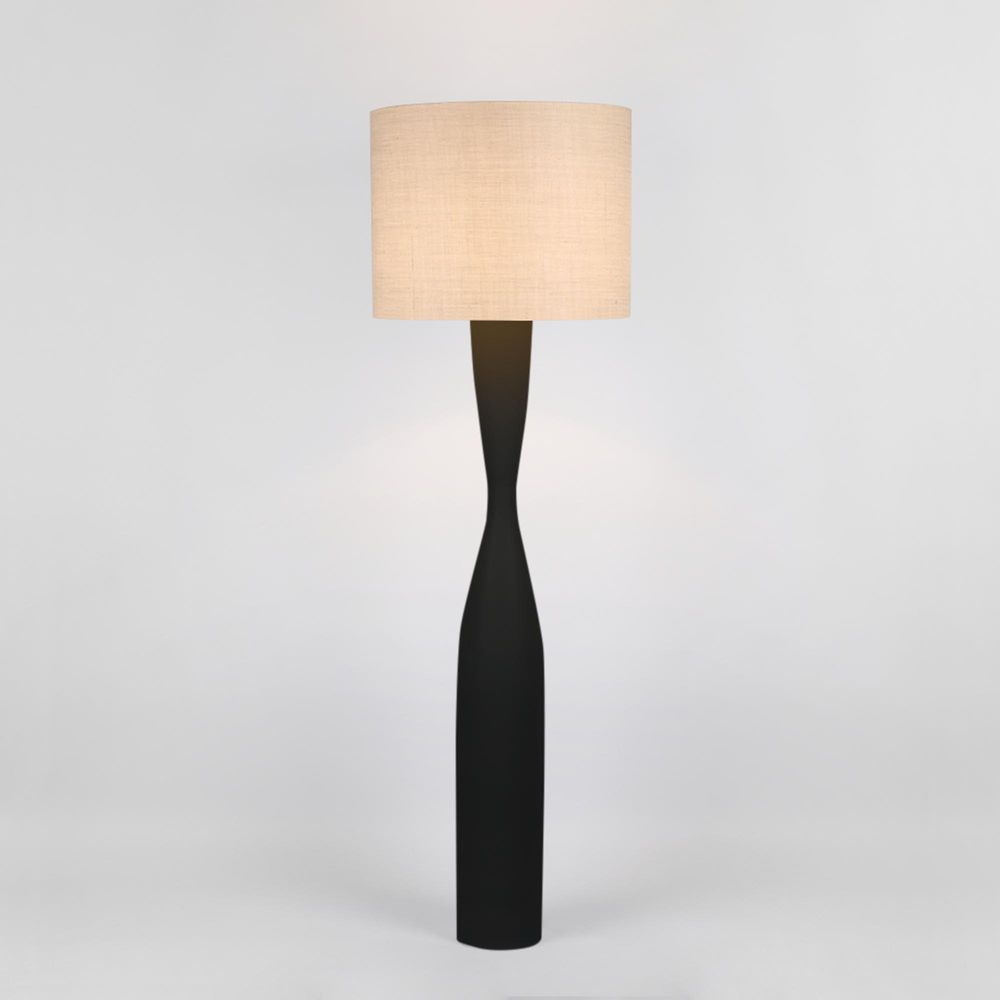 Magnus Wood Floor Lamp Saddle Base with Black Shade