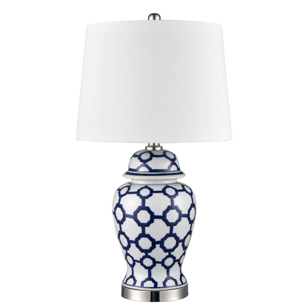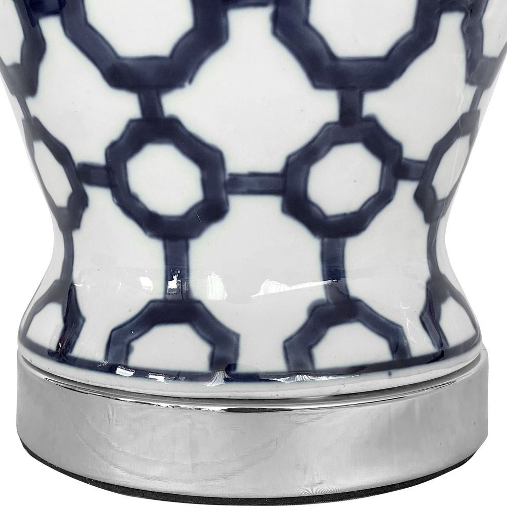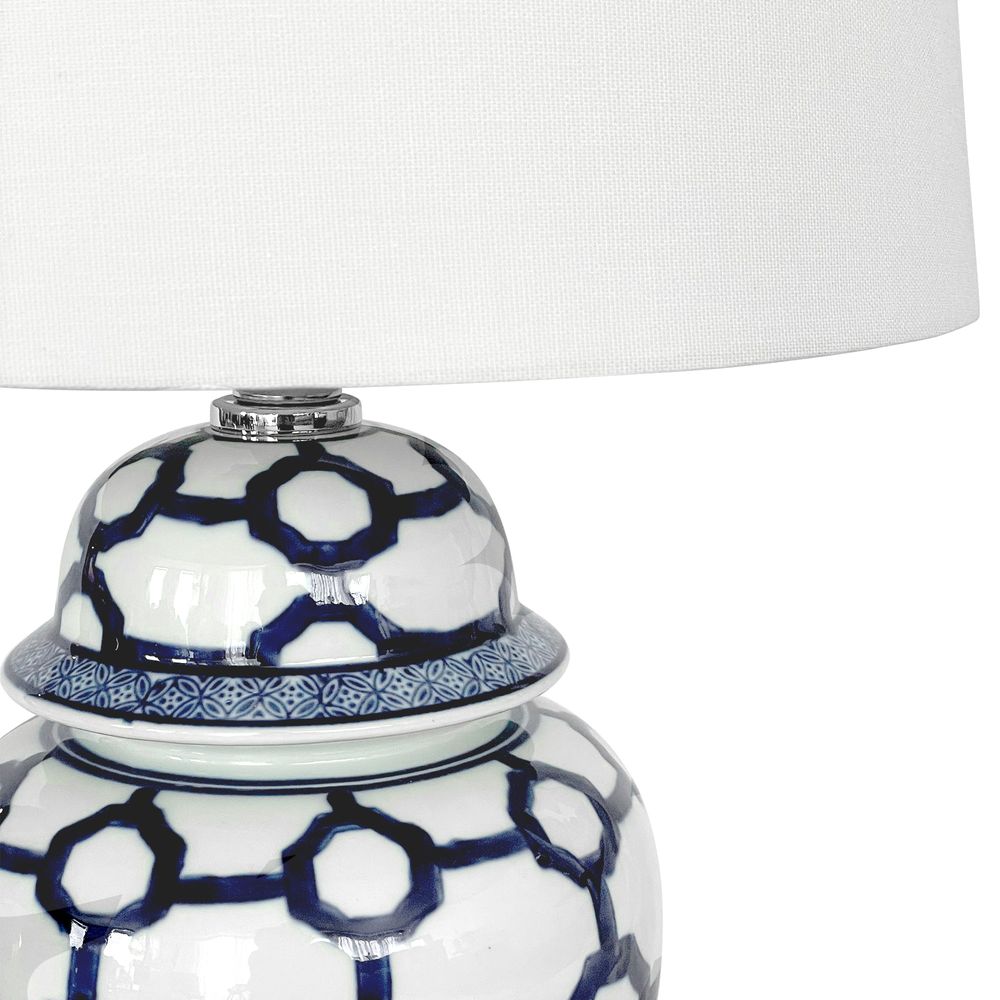 Lucca Small Blue & White Jar Shaped Lamp W/ Shade