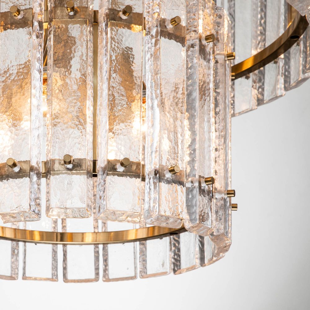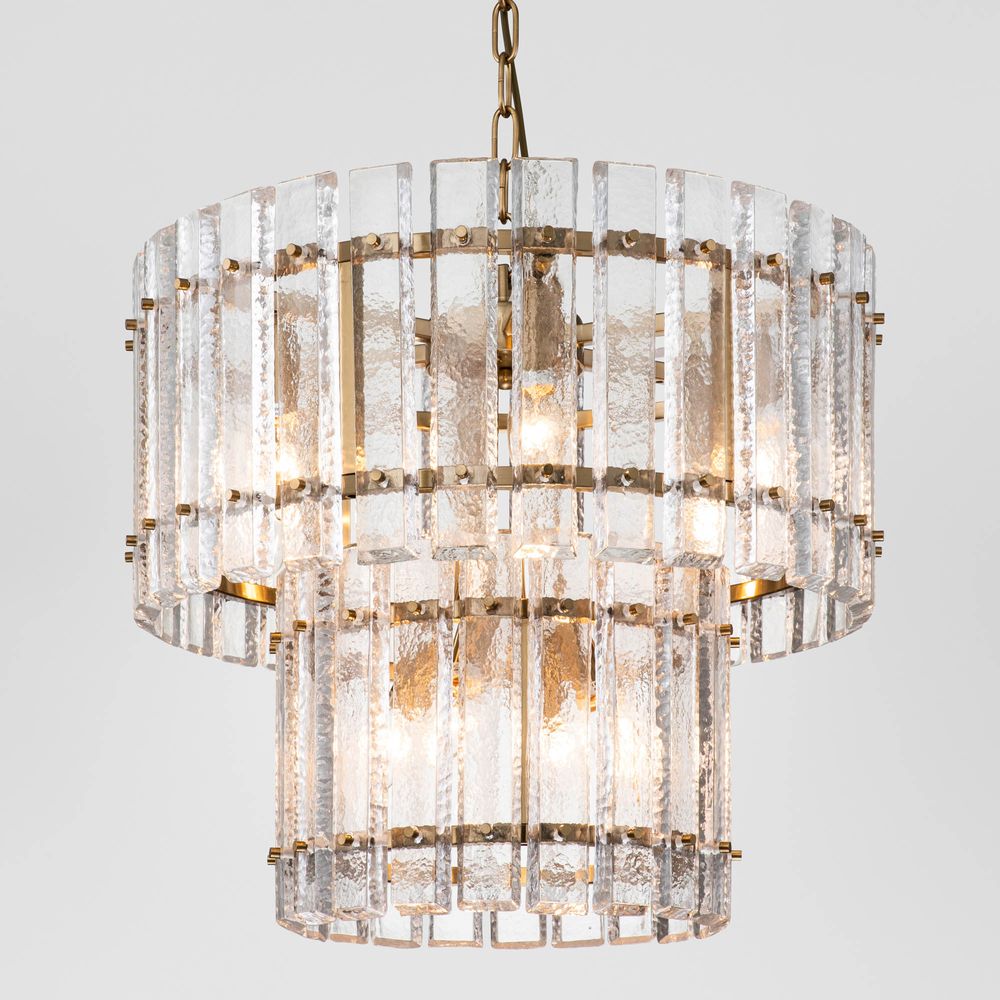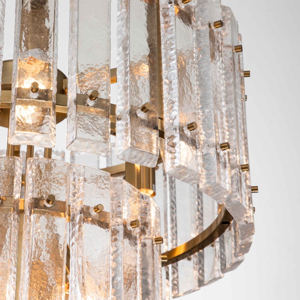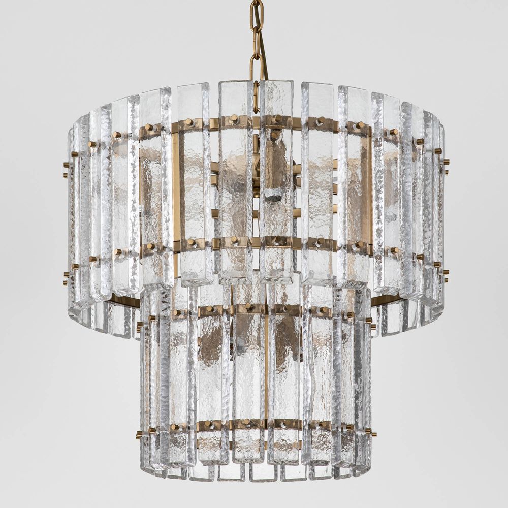 Illuminate your space with unparalleled sophistication using our Fenton Chandelier, a two-tiered masterpiece that marries opulence with modern allure. Its brass-finished iron frame, adorned with textured clear crystals, casts a mesmerizing glow that transforms any room into a captivating sanctuary. Whether suspended in a living room or gracing hotel lobbies and commercial spaces, this luminary adds a touch of elegance and grandeur to every setting it adorns.