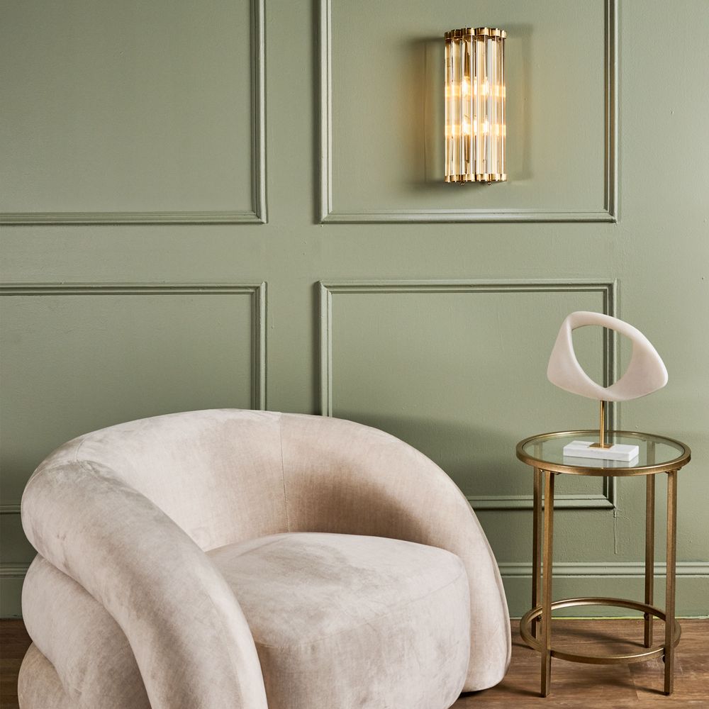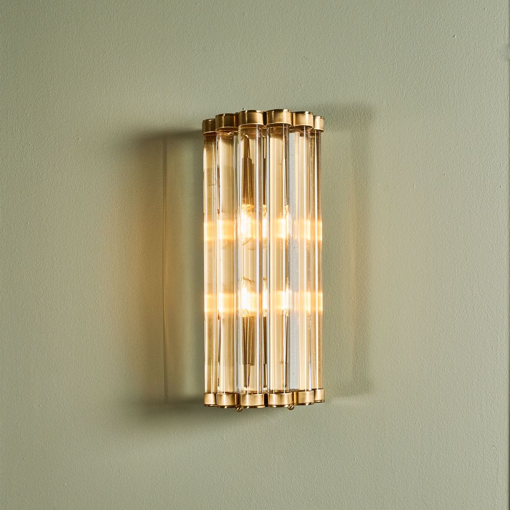 Let your walls speak volumes with our Medium Kobe Wall Light. Featuring six vertical glass rods gracefully arranged in a semicircle and supported by a brass-finished iron base, this luminary masterpiece adds a touch of sophistication to any space. Whether adorning your bathroom vanity mirror, gracing your bedside tables, or casting a warm glow in your living room, let the Kobe Wall Light illuminate your world with unparalleled charm and allure.