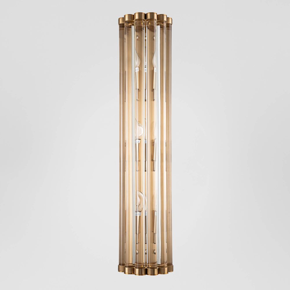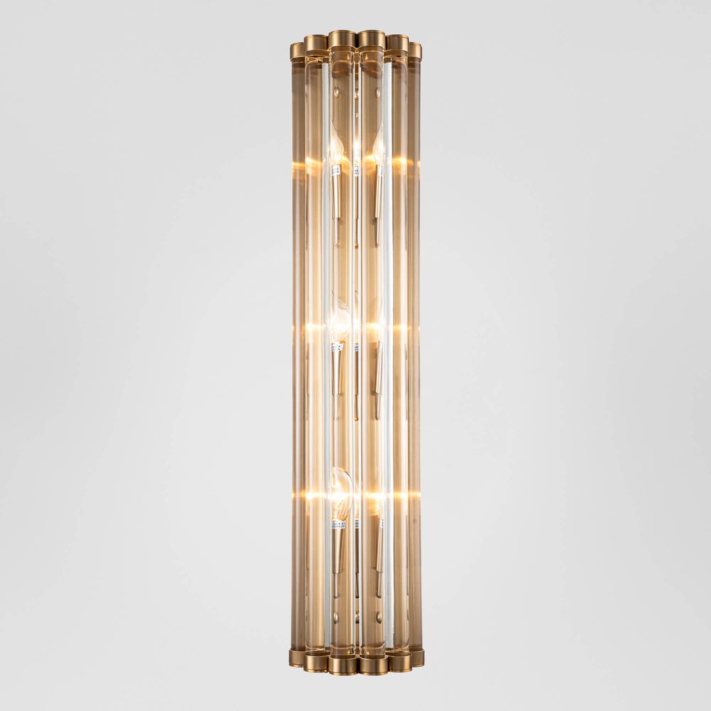 Let your walls speak volumes with our Large Kobe Wall Light. Featuring six vertical glass rods gracefully arranged in a semicircle and supported by a brass-finished iron base, this luminary masterpiece adds a touch of sophistication to any space. Whether adorning your bathroom vanity mirror, gracing your bedside tables, or casting a warm glow in your living room, let the Kobe Wall Light illuminate your world with unparalleled charm and allure.