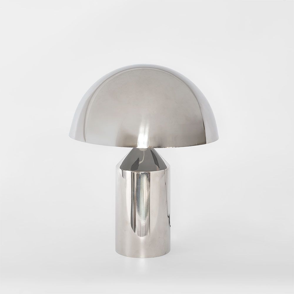 Our Jacaranda is timeless modern table lamp features metal dome shade on stylish simple base which excellent choice for desks, living room, offices and work spaces. This mushroom-like lamp has light directly downwards to create soft and comfortable illumination. A modern take on a classic design, the Jacaranda Lamp provides home with the most sophisticated style and will be sure to turn heads. Four colours are available: brass, shiny nickel, black and white.