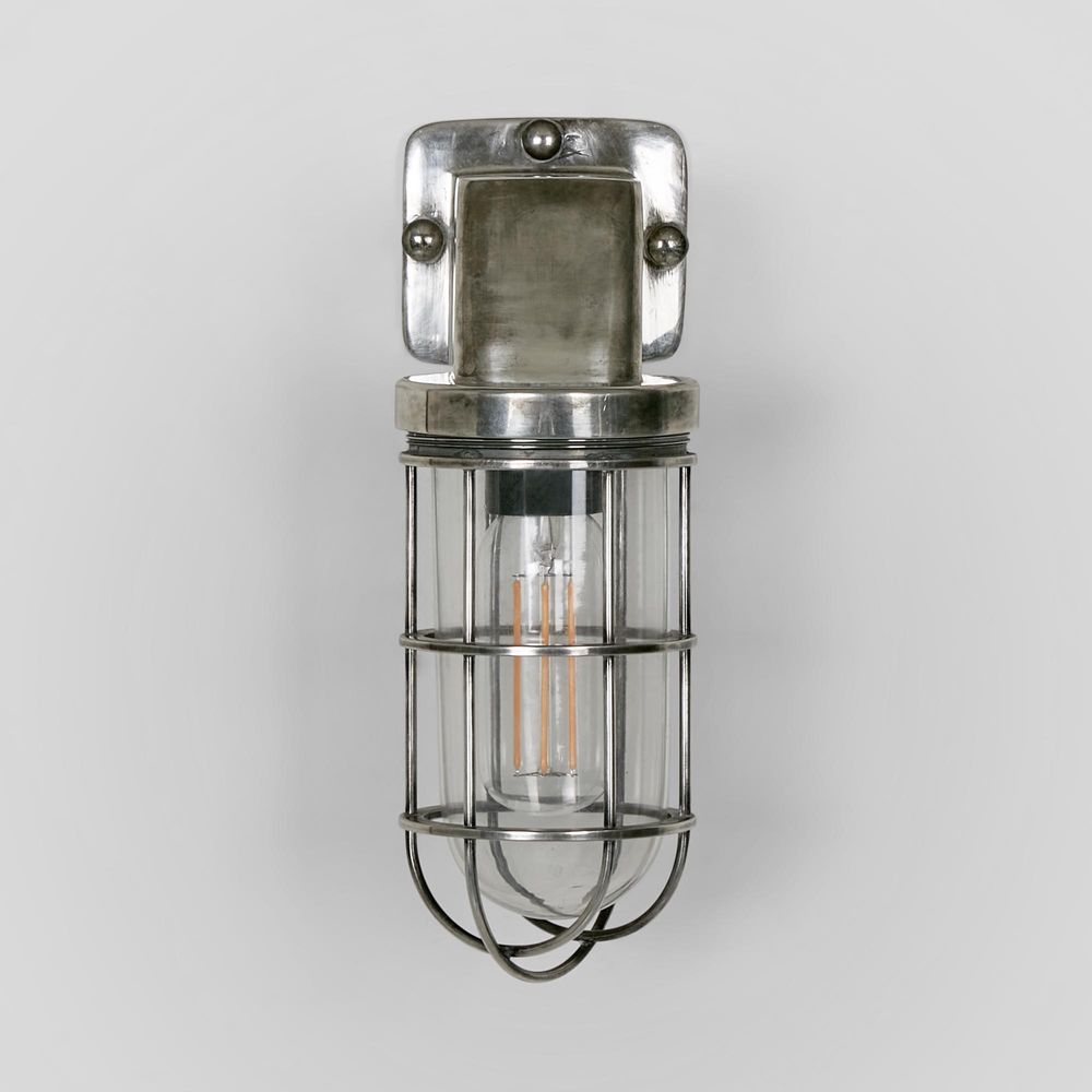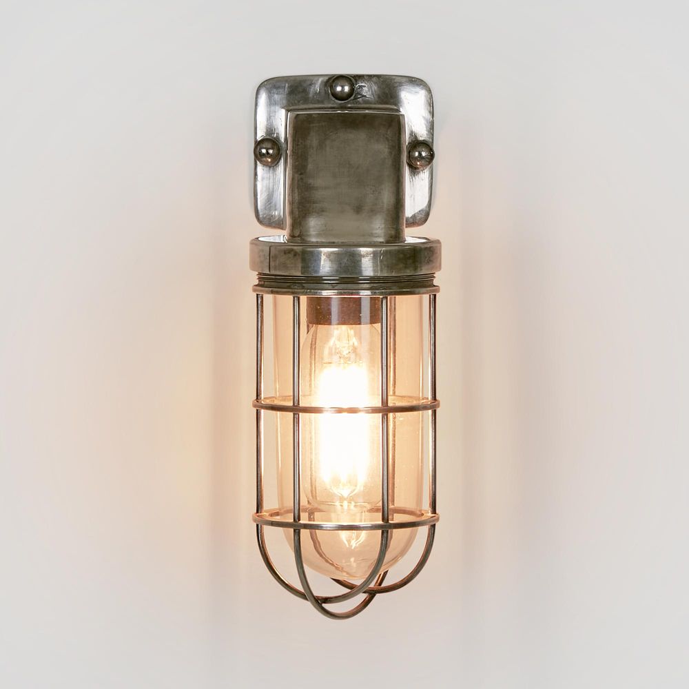 Our Royal London wall light is IP-rated 54 wall sconce with clear glass and brass metal cage, which suitable for indoor and outdoor use. This lantern style wall lamp is used mainly for outdoor garden lamp, patios and entryways. With sleek appearance, it can also be used in bathroom as side mirror lights to match any industrial, rustic or loft-style décor. Its caged enclosure houses a standard bulb or an antique-style filament that mimics the glow of a warmly lit station.