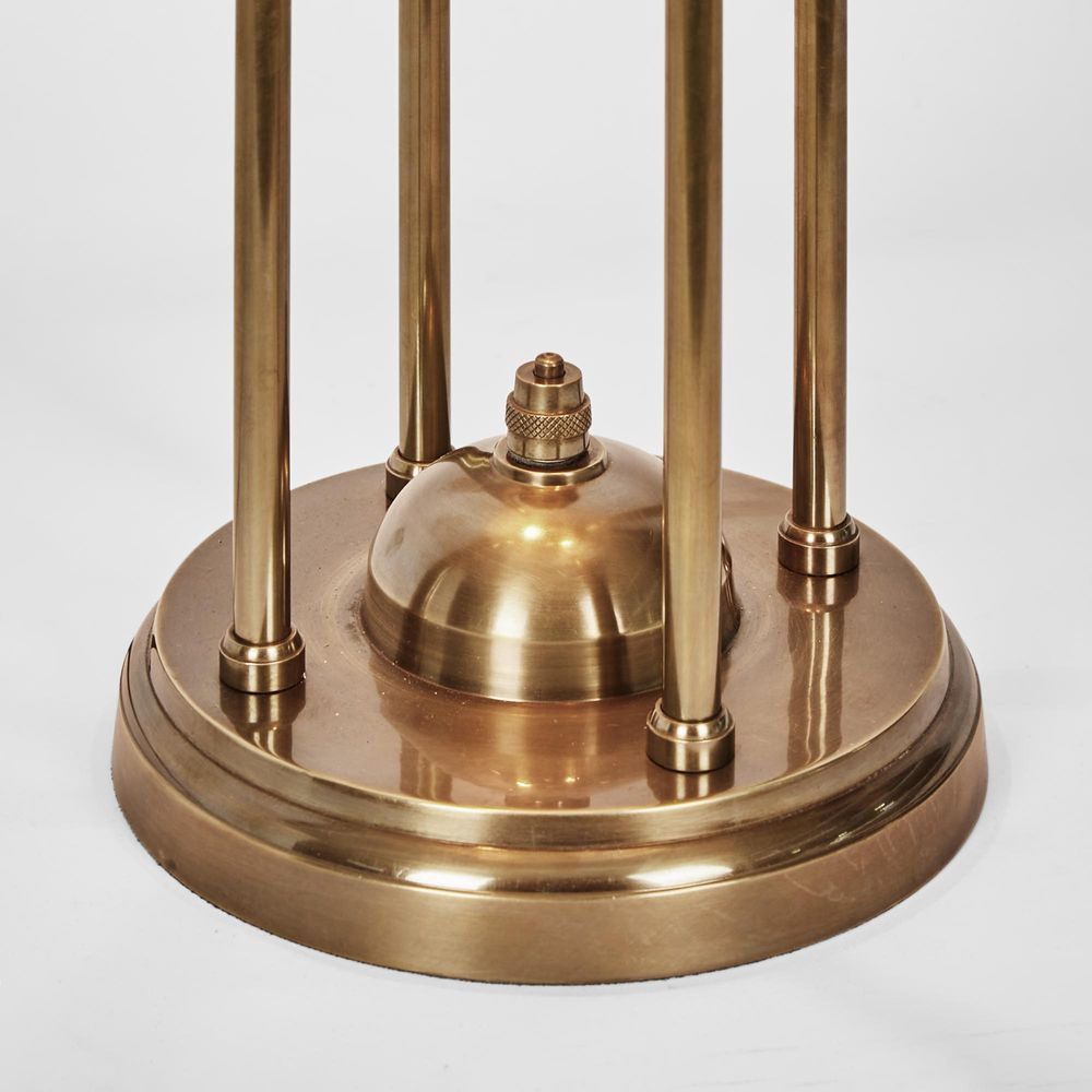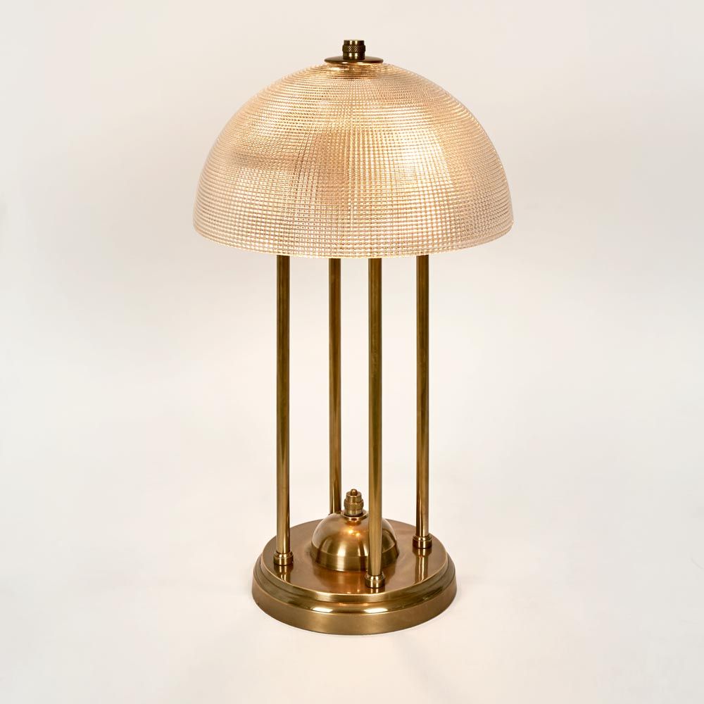 Bejewel your space with our Victor Table Lamp. Its textured dome glass casts a mesmerizing light, while four slender columns in antique brass elegantly support the lamp, anchored by a broad round base for stability and style. Perfect for adorning hallway consoles, table tops, bedrooms, or studies, the Victor Lamp adds a touch of refined charm to any space, illuminating your surroundings with grace and style.