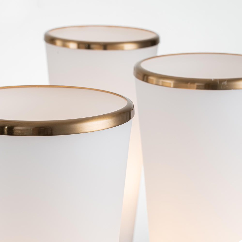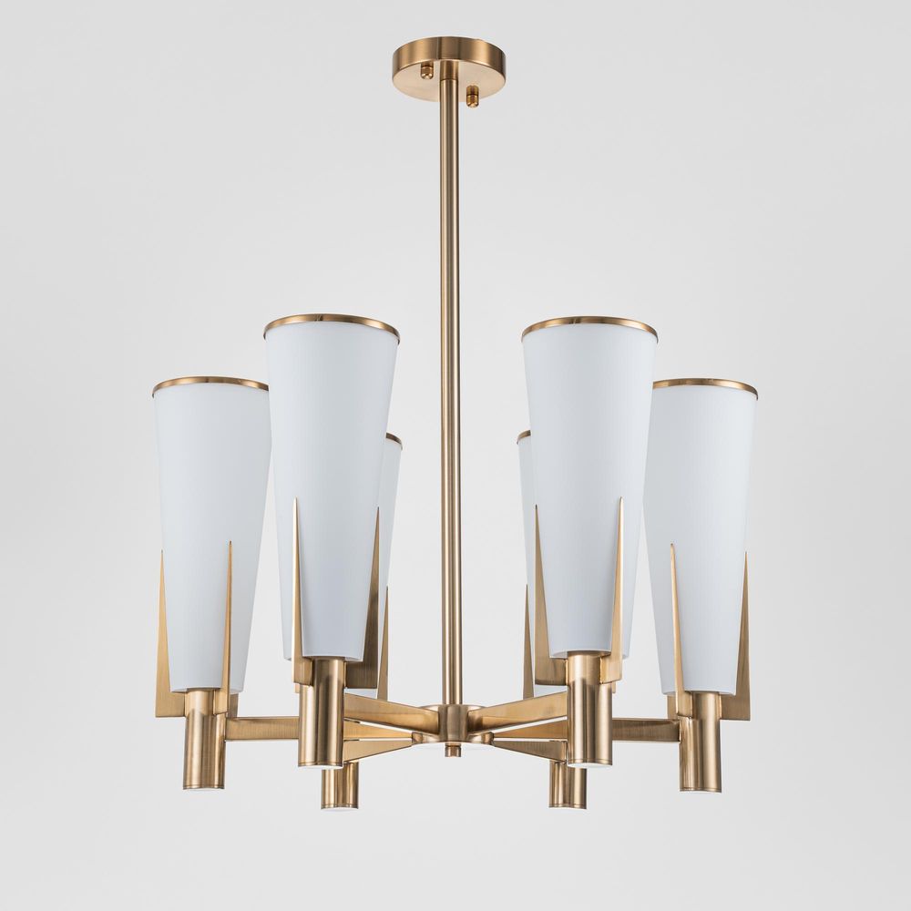 Make your space shine like never before with our St. Germain Chandelier. Crafted with a brass-finished iron frame gracefully cradling six light fixtures adorned with frosted tapered glass shades, this luminary masterpiece adds an air of elegance to any setting. Whether adorning your lounge room, bedroom, or enhancing offices and commercial areas, let the St Germain Chandelier be the beacon of light that elevates your space with timeless style and grace.