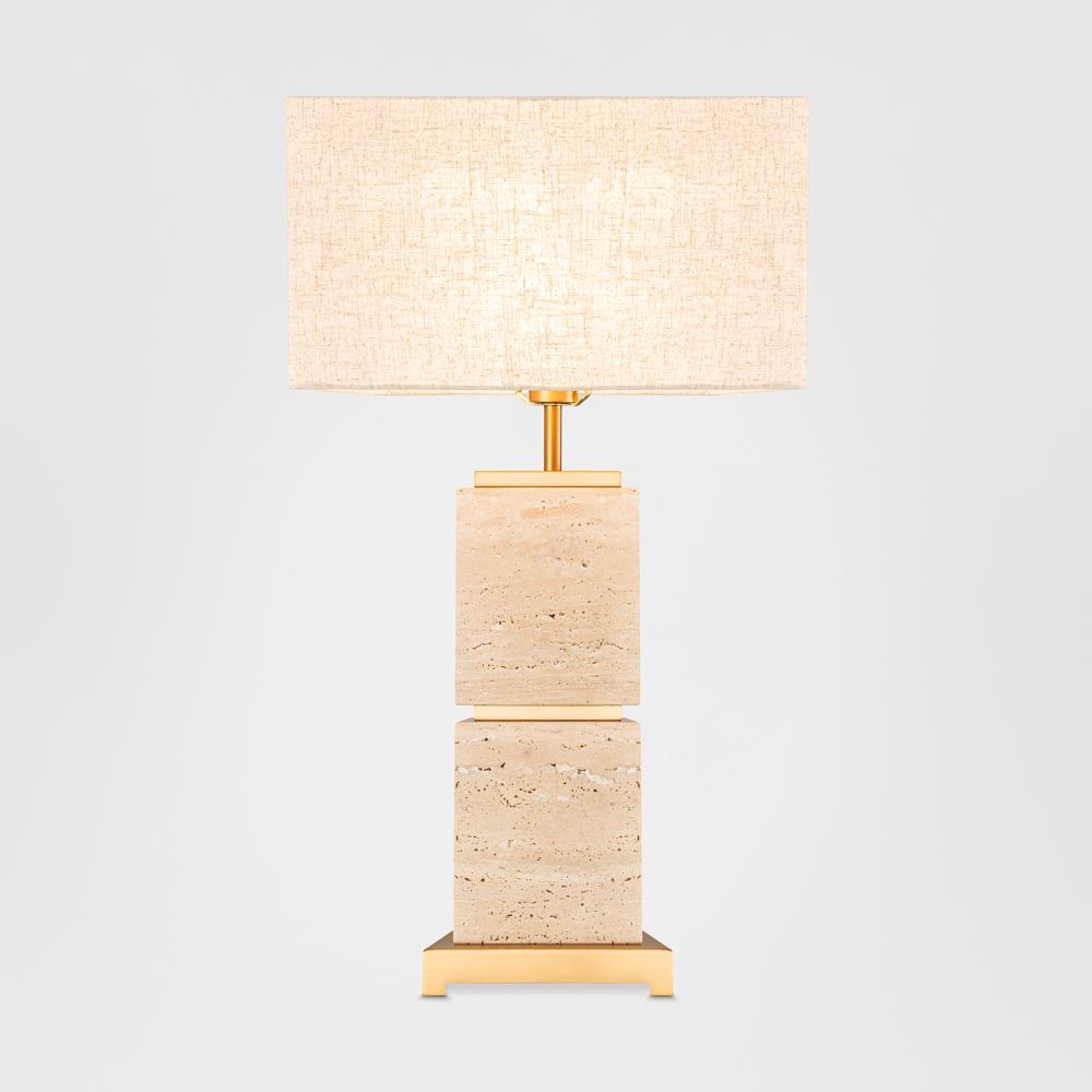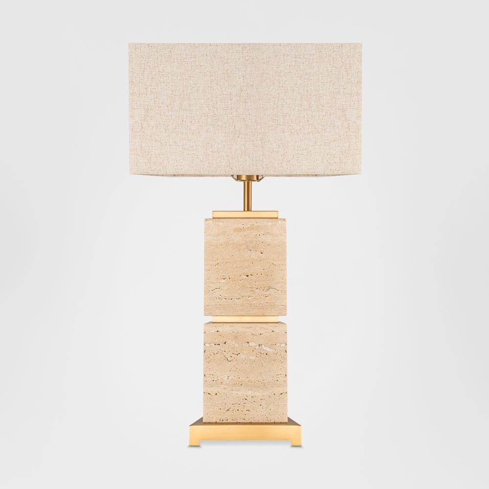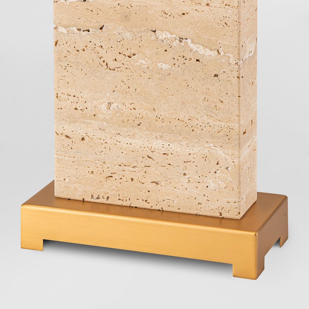 Let our Ashley Table Lamp shed light on your impeccable taste and elevate your decor game. With its neutral shade casting a soft glow, this lamp boasts a rectangular base crafted from brass-finished iron and adorned with luxurious travertine accents, adding a touch of sophistication to any space. Whether illuminating your living room, bedroom, or home office, or gracing commercial spaces like hotel rooms and retail stores, the Ashley Lamp promises to elevate every corner with its refined allure and understated charm.
