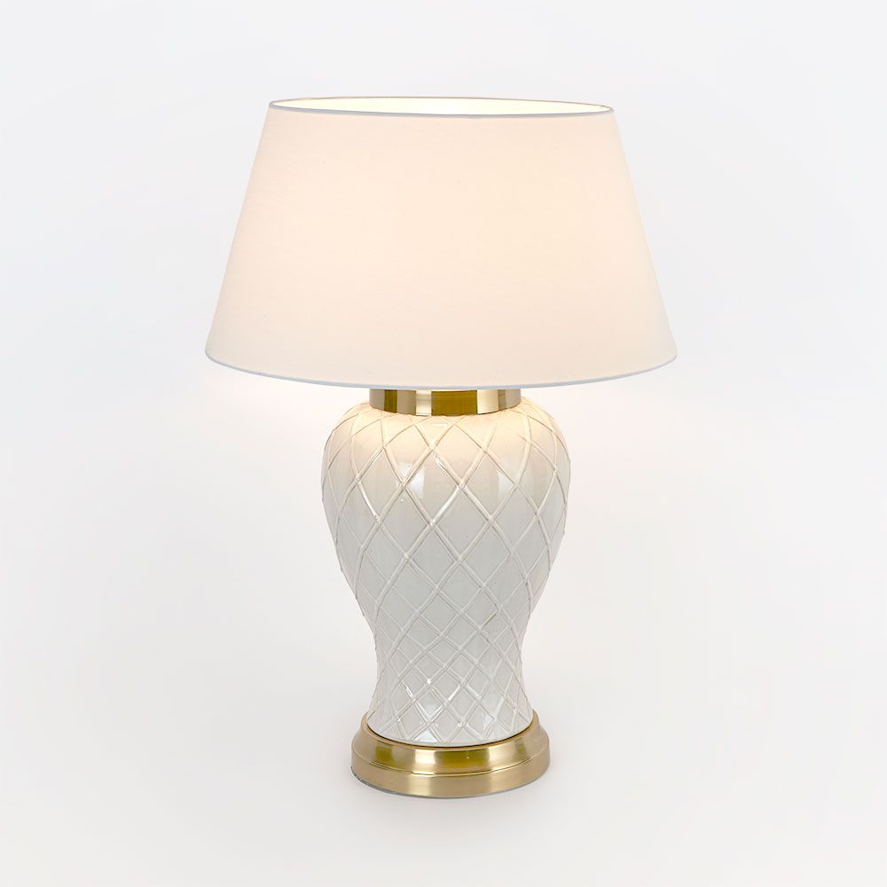 Turn on the charm and illuminate your space with our Berkley Ceramic Lamp and Shade. The ceramic base, with its intricate lattice detail and graceful urn shape, exudes understated charm and refinement. Perfect for adorning bedside tables, console tables, or desks, this lamp casts a warm and inviting glow while elevating the decor of your Hamptons-themed haven. Quick assembly ensures effortless setup, while maintenance is a breeze with just a simple dusting using a soft cloth.