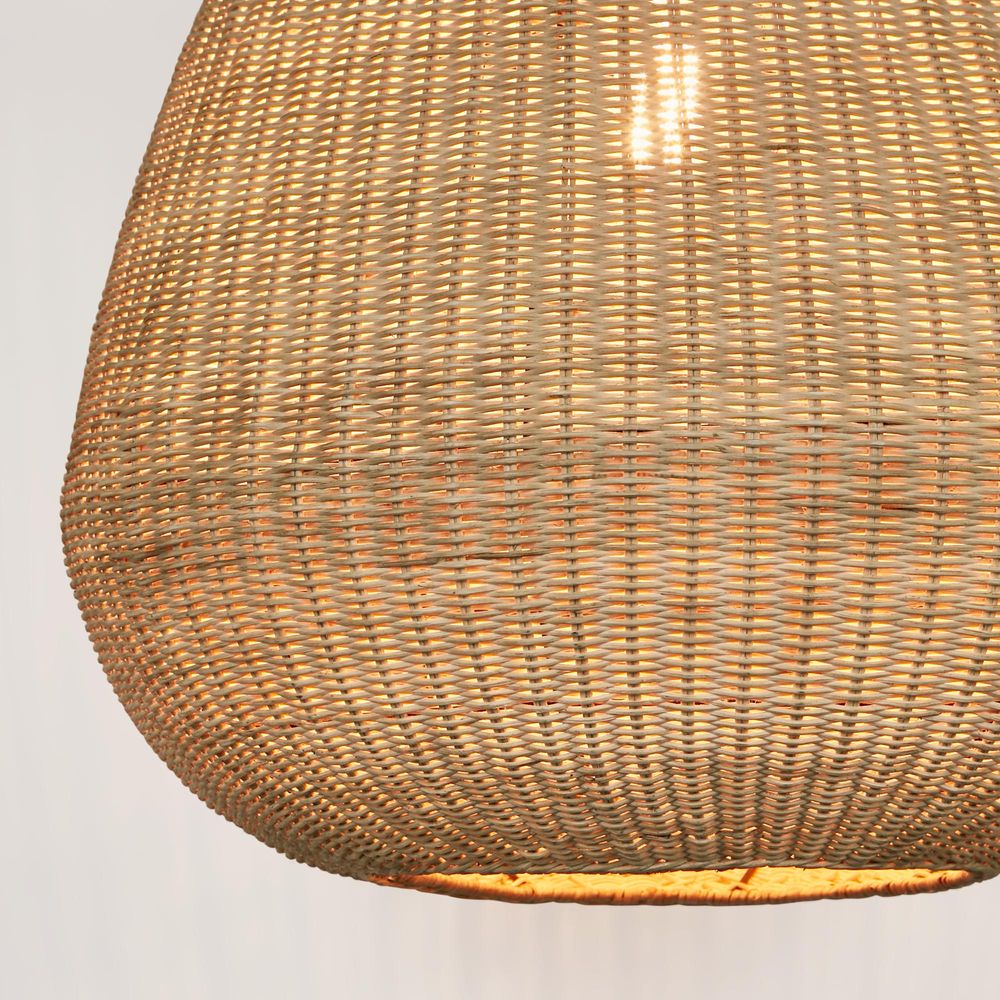 Coco Rattan Pendant crafted from Rattan, offering a natural, warm ambiance. This piece is ideal for cozy dining spaces or living rooms. Please note: Rattan is not designed for full outdoor use. If placed outdoors or even in covered outdoor areas, it may weather, fade, or change over time due to exposure to sunlight and moisture. We recommend indoor use or placing it in well-protected areas.