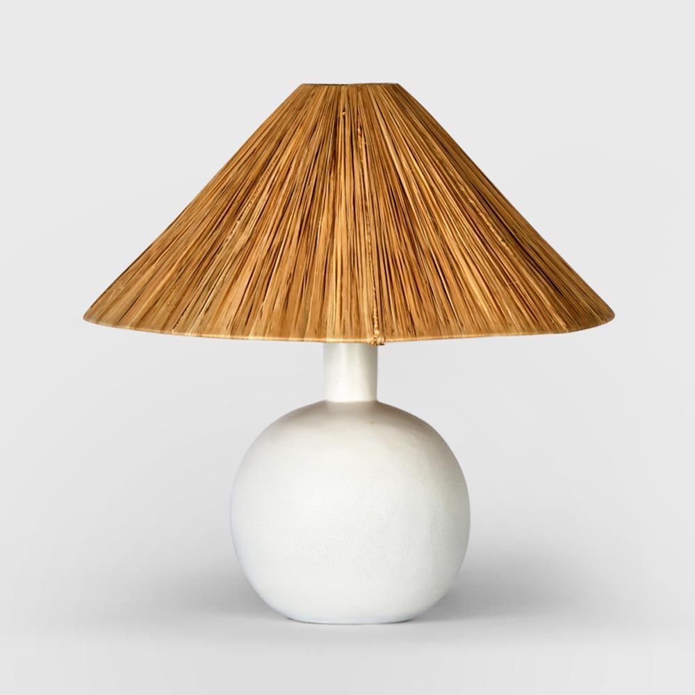Esta Lamp Small White with Raffia Shade