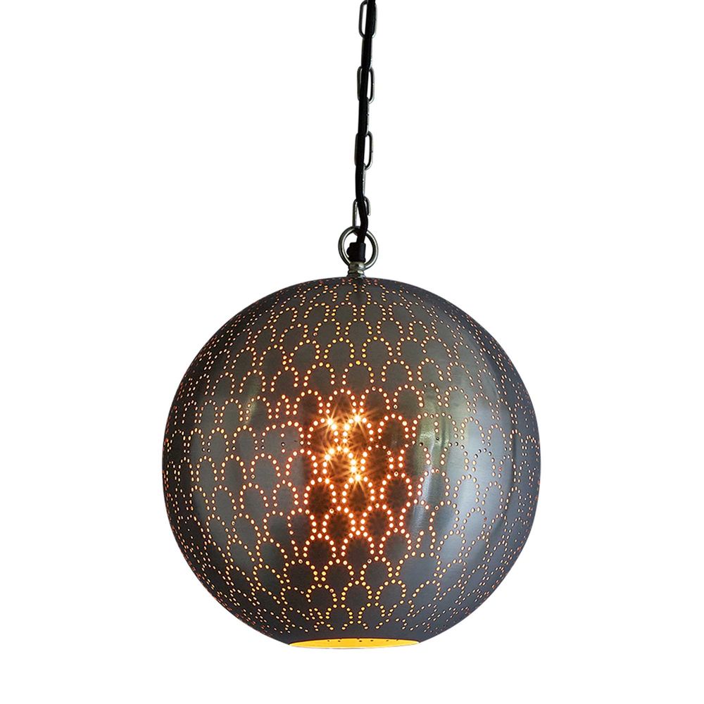 Prepare to be mesmerized by the Mamba Ceiling Pendant in Nickel, a luminary masterpiece adorned with intricate scale patterned perforations. Casting mesmerizing shadows, this round pendant transcends mere illumination to become a captivating art piece in your space. Whether suspended above a dining table, in a cozy corner, or gracing a stylish commercial setting, let its elegant allure elevate every moment with sophistication and grace.