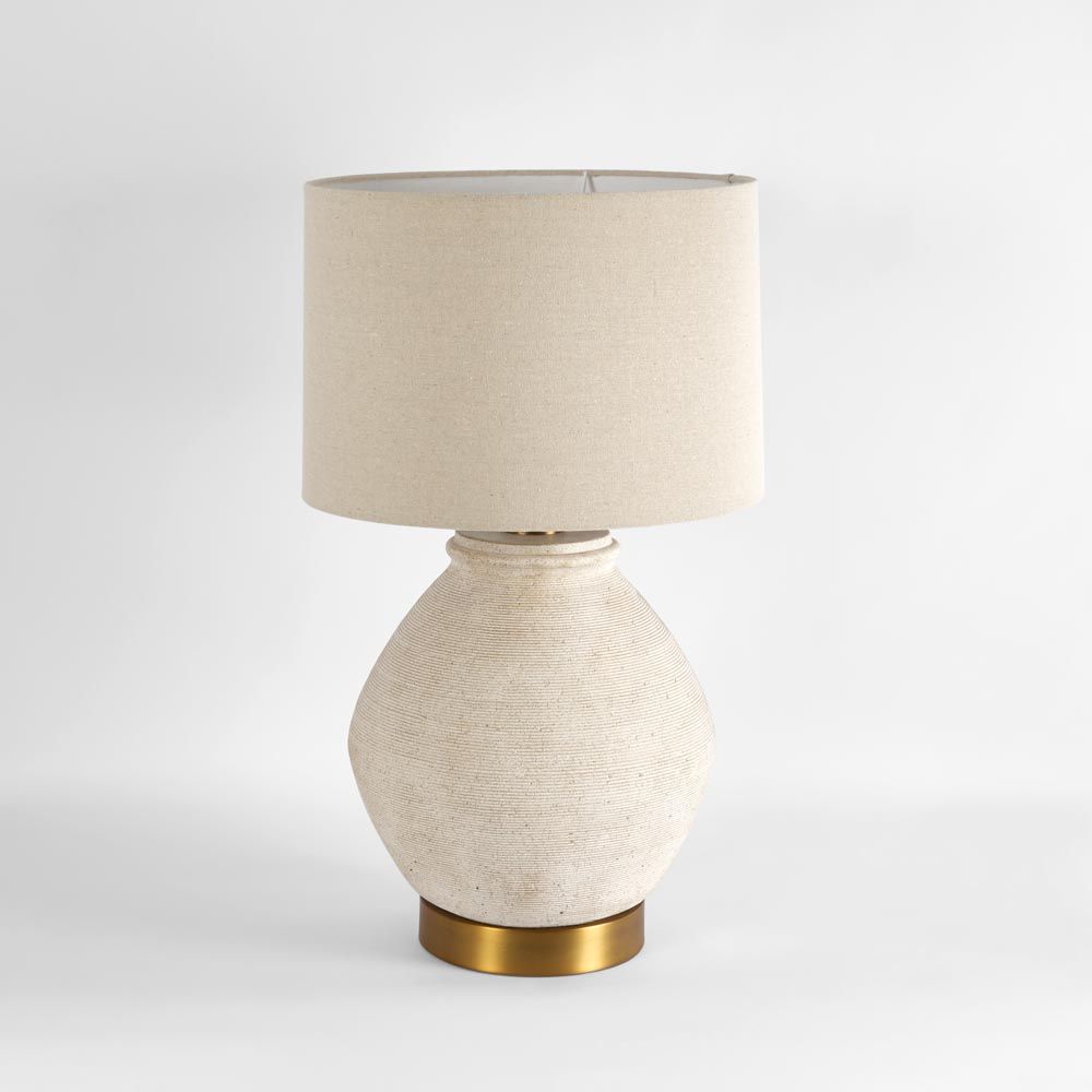 Forbes White Sandstone Table Lamp & Linen Shade