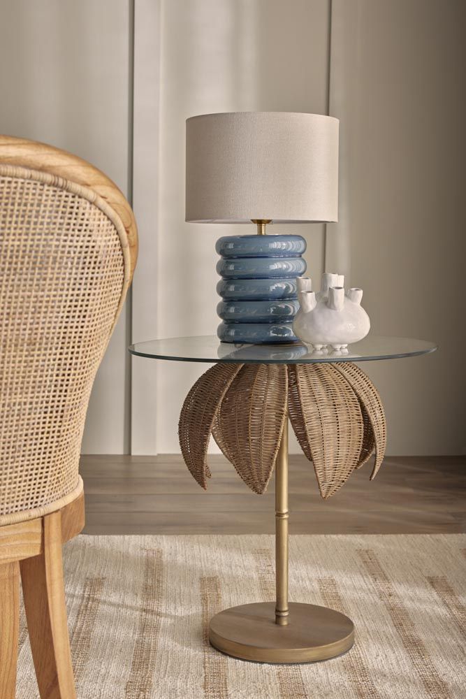 Our Bentley Blue Table Lamp & Shade is crafted in a ceramic base & linen shade, offering a versatile charm. This piece is suitable for various settings.