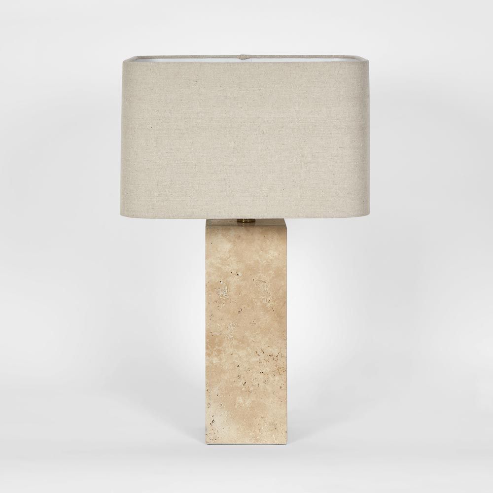 Imperial Travertine Table Lamp with Natural Linen Shade