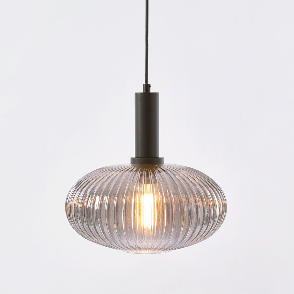 Rio Ceiling Pendant Smoky Grey crafted from Glass, Metal, offering a natural, warm ambiance. This piece is ideal for cozy dining spaces or living rooms.