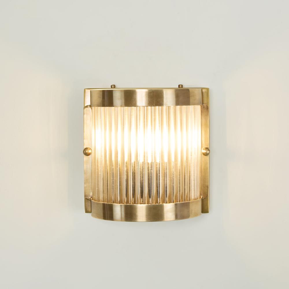 Light features a timeless design with an antique brass backplate and clear