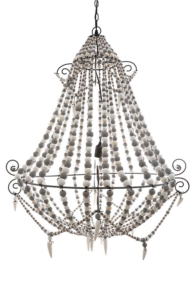 Our Beaded chandelier features elegant layers of wooden beads draped like necklaces. This chandelier is hand-made product and perfect for living and bedroom or commercial place such shops or photoshoot room. Beaded chandelier will illuminate our home spaces beautifully and also become the epicenter of guest’s attention.