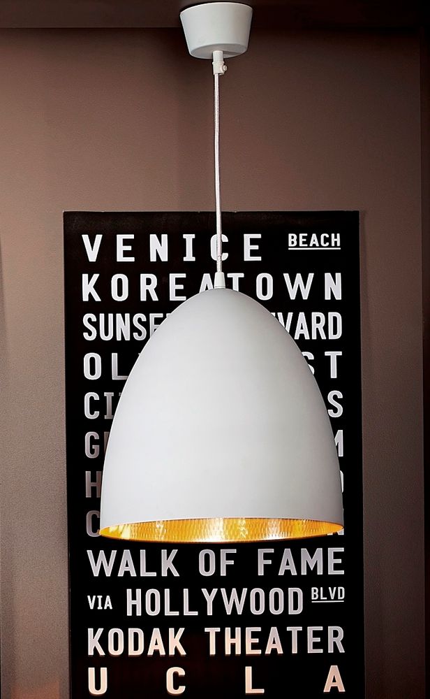 Our egg lamps are beautifully handcrafted and finished with deep matt white outside with beaten copper/brass/silver lining inside. The colour inner shade offers contrast to white colour outer shade which create fresh and inspiring look for your kitchen. The black cable cord is adjustable for perfect positioning in your living space. Style this beautiful piece of decorative lighting over your dining table or in a set of three above your kitchen bench for a spectacular lighting statement.