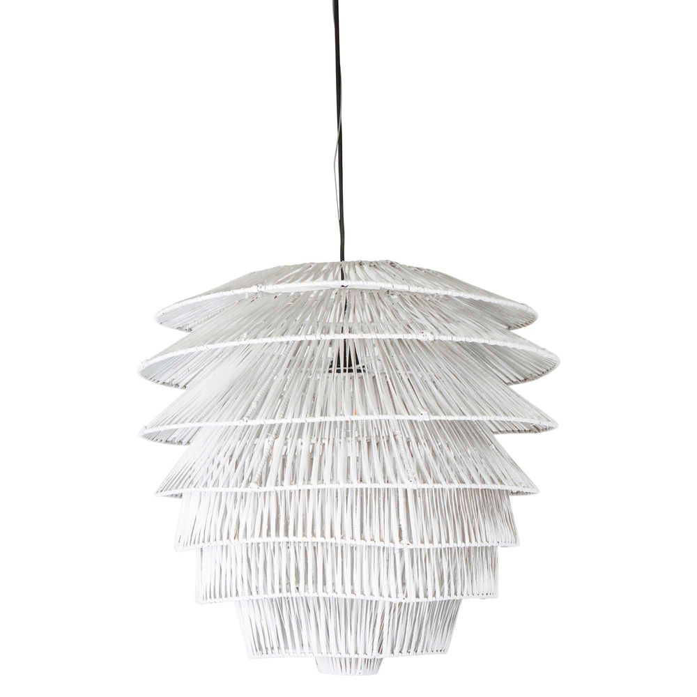 Add a touch of organic elegance to your home with our Saba Rattan Ceiling Pendant in White, crafted from natural rattan woven into layered segments for a look that's both simple and refreshingly unique. Perfect for adding a cozy ambiance to indoor seating areas and bedrooms, this pendant exudes a laid-back elegance that's sure to be a favorite in any room. Bring a piece of paradise into your home decor with this one-of-a-kind lighting fixture, and let its warm glow transport you to island-inspired bliss. Please note: Rattan is not designed for full outdoor use. If placed outdoors or even in covered outdoor areas, it may weather, fade, or change over time due to exposure to sunlight and moisture. We recommend indoor use or placing it in well-protected areas.