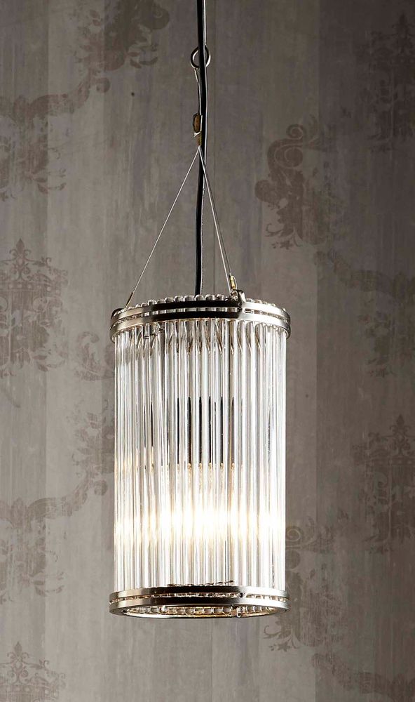Our Verre pendant light is modern accent pendant that made from clear glass tubes with polished nickel frame metal top and bottom. The suspension cord is adjustable with metal string to ensure this pendant is hung levelled. The glass tubes diffuse light beautifully and produce amazing round reflection on the on the glasses. This pendant will instantly upgrade your foyer, kitchen island or living space.