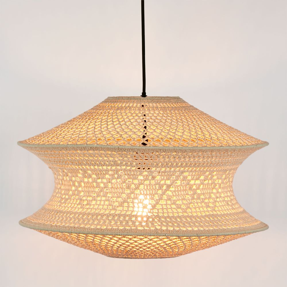 Add a twist of elegance to your decor with our Large Summersby Ceiling Pendant in Ivory. Crafted with exquisite detail, this pendant features a beautifully crocheted design delicately woven around a sturdy iron frame. Its neutral color palette and intricate crochet work evoke a sense of serenity and calm, transforming any space into a sanctuary of tranquility. From the comfort of your living room or bedroom to the cozy ambiance of cafes, let this pendant weave its charm and elevate every moment with its understated sophistication and unique character.