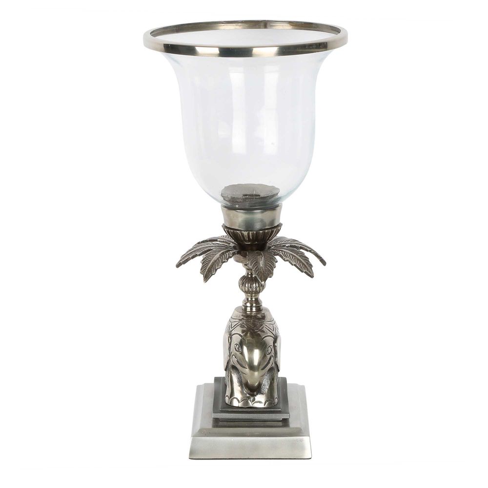 The Sabu Hurricane Candle holder Vase Silver is unique item with brass elephant as it create warm elegant addition to any home.
