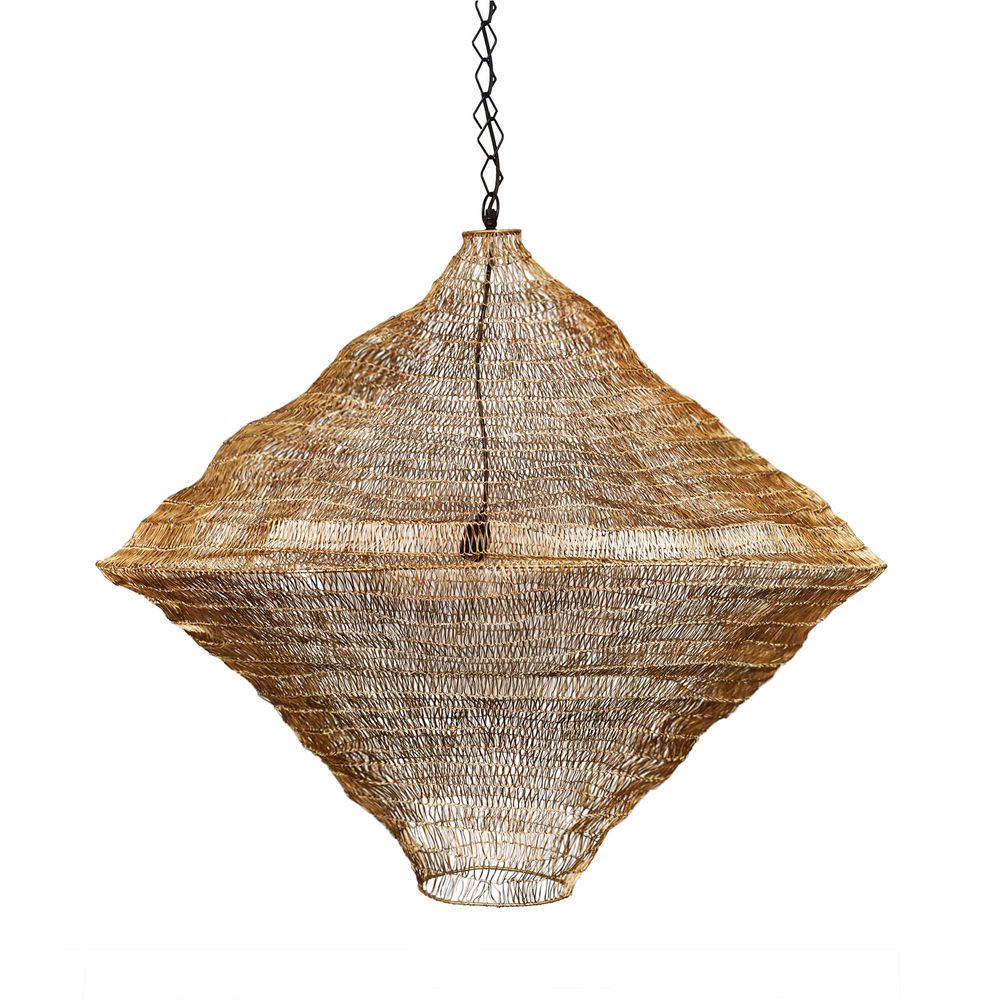 Our Metropolitan is a modern and stylish hanging lamp in medium-sized, diamond-shaped shade with a black/brass finish on the outside, giving it a sleek and sophisticated look. The shade is made of aluminum and is suspended by adjustable cord and chain that allows you to customize the height of the lamp. The lamp has a minimalist design that would complement a variety of interior styles, from contemporary to industrial. It is perfect for adding a touch of elegance and sophistication to any space, whether it's a living room, bedroom, or dining room. Overall, the Metropolitan Ceiling Pendant is a stylish and practical lighting solution that would add a touch of modern sophistication to any room.