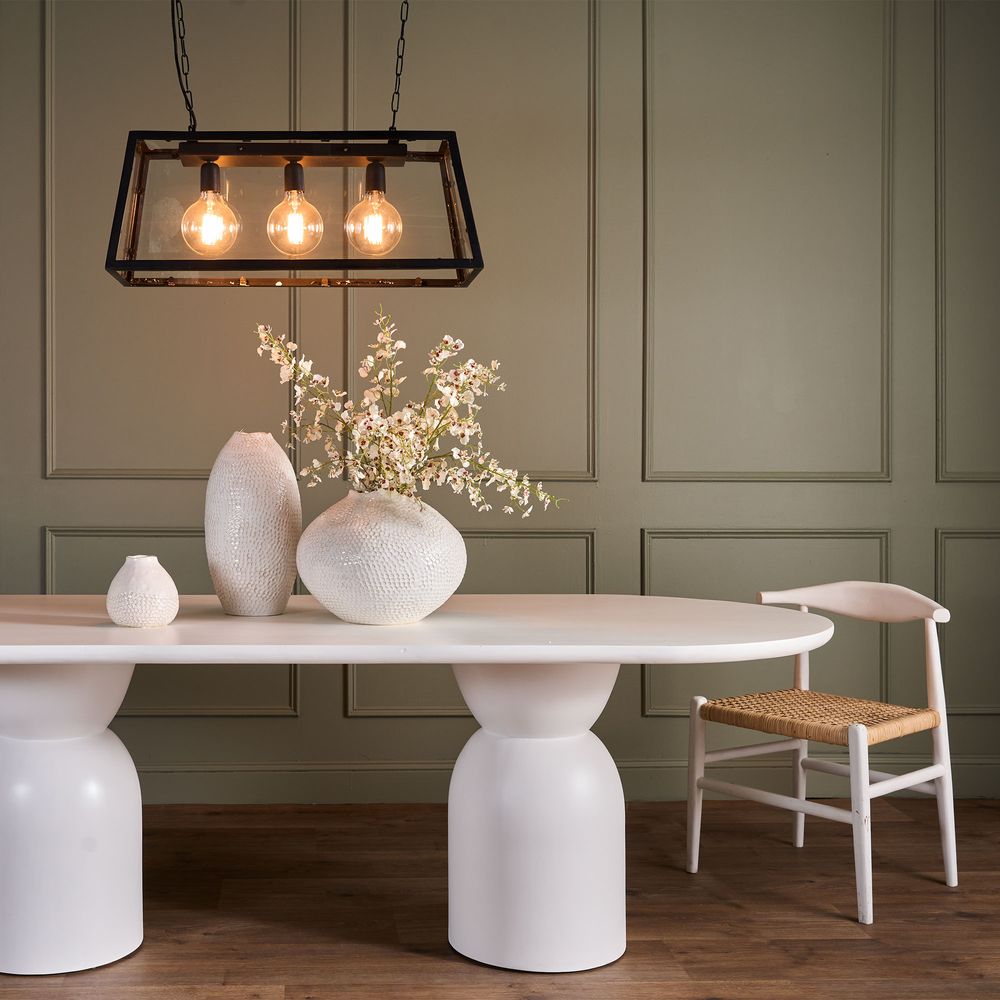 Solane Ceiling Pendant Black crafted from Iron, Glass, offering a natural, warm ambiance. This piece is ideal for cozy dining spaces or living rooms.